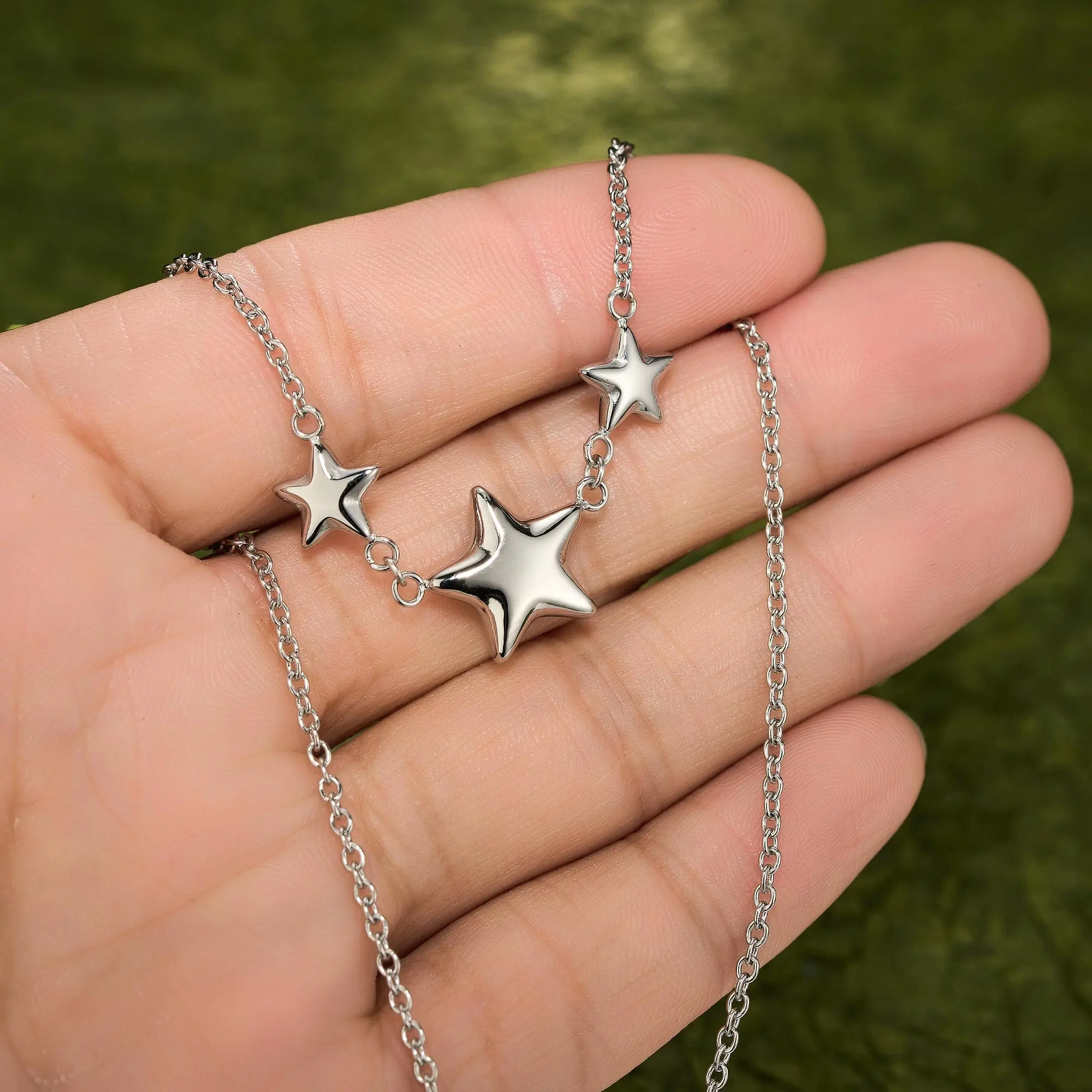 ✨ Material & Design: - Made of stainless steel, ensuring it does not tarnish. - Features chunky stars and bubble design. - Minimalist chain necklace for women.