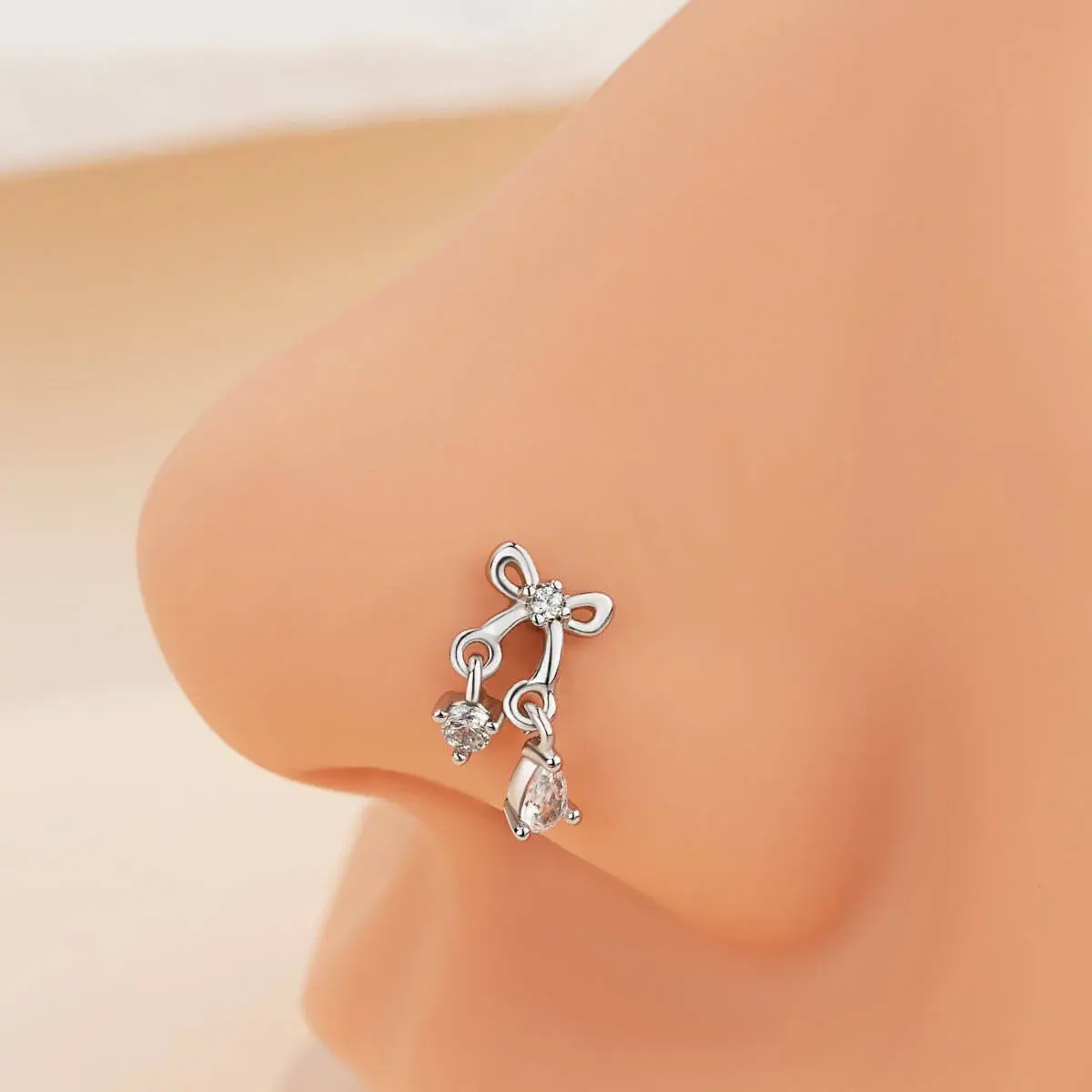 ·This nose stud combines whimsy and sophistication. 🎀