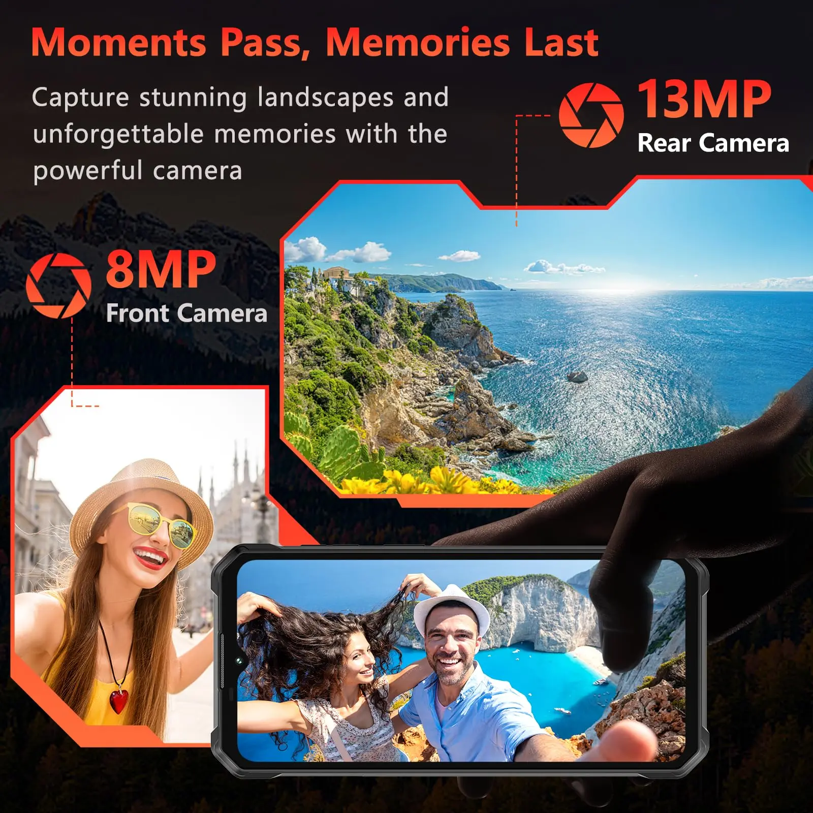 ·6.52 inches Display Smart phone + 13MP main camera : OUKITEL WP53 cell phone unlocked is equipped with a 6.52-inch 60Hz screen, made of Corning Gorilla Glass, which is durable. With a resolution of 576 x1280 and a brightness of up to 400nits, the image is clear and colorful. Even in the sun, it can be displayed clearly. OUKITEL WP53 phone is equipped with a 13MP rear camera and a 5MP front camera. Various shooting modes such as panorama, portrait, beauty, professional, etc. can present you with excellent photos and videos.