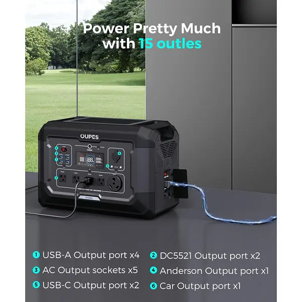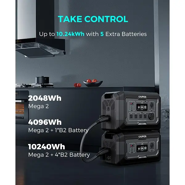 5. OUPES B2 Extra Battery 2048Wh Portable Power Station LiFePO4 Solar Generator Battery 42lbs for RV Outdoors Camping Home Backup