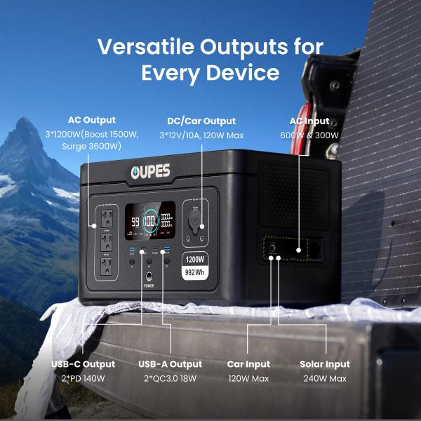 ·Powerful Performance: The OUPES Exodus 1200W 992Wh Portable Power Station offers 1200W surge power. It weighs 23.25lbs, making it portable for RVs, outdoors, camping, and home backup. ️
