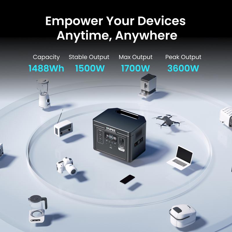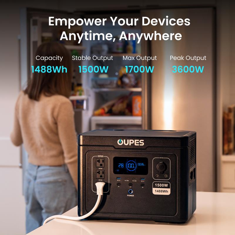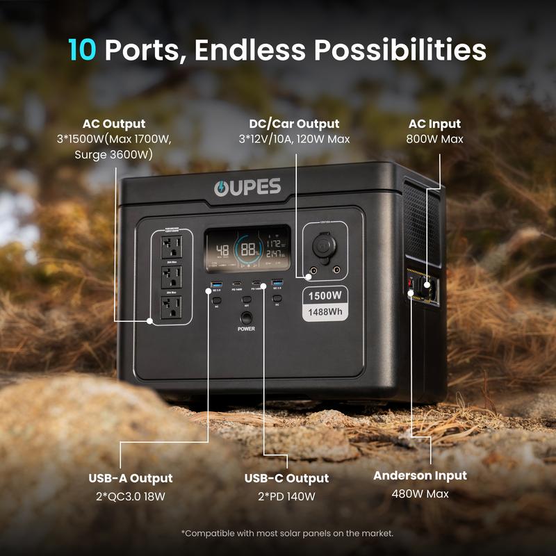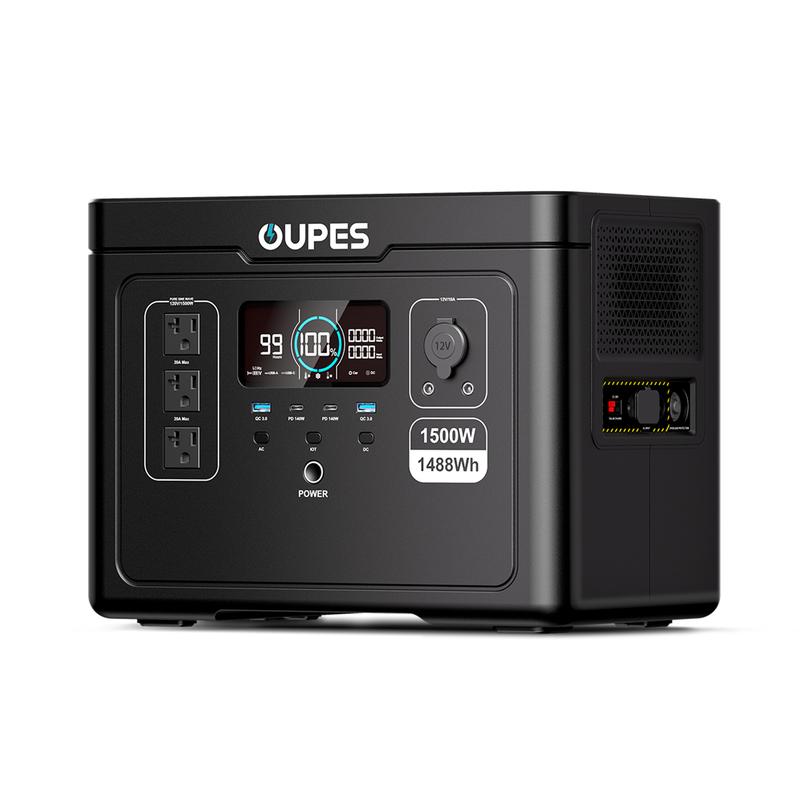 OUPES 1488Wh 1500W Portable Power Station Exodus 1500, LiFePO4 Battery Solar Generator,0-80% in 1.5h,APP Control,140W USB-C for Outdoor,Camping