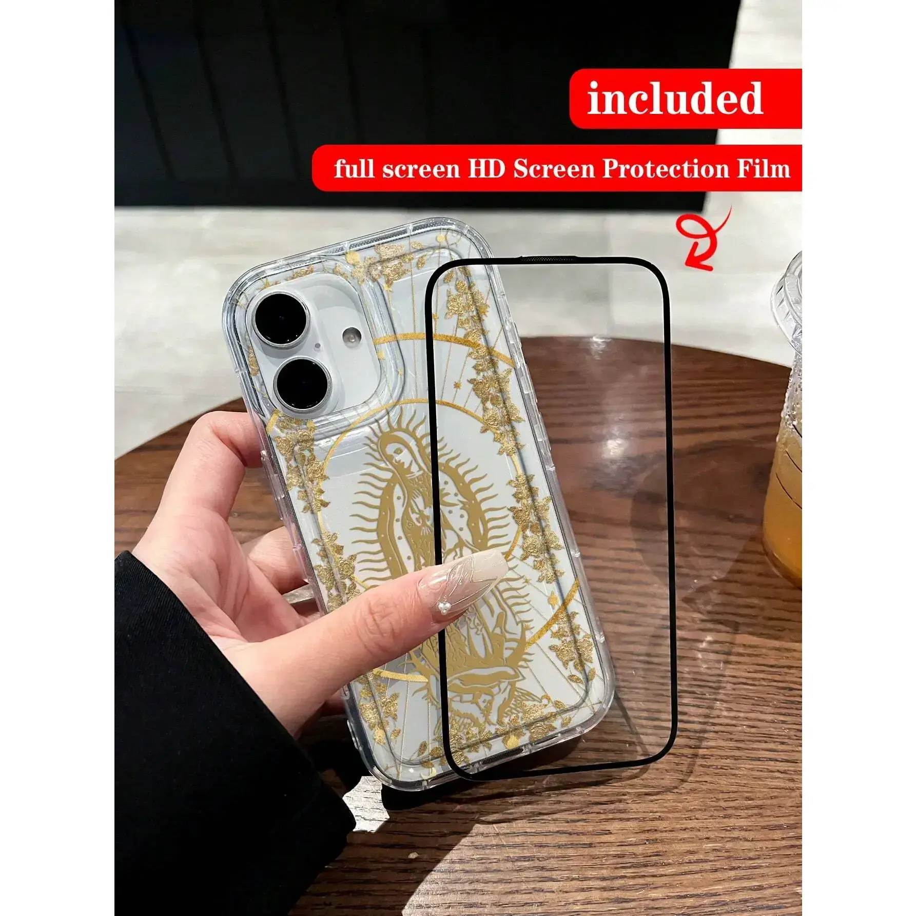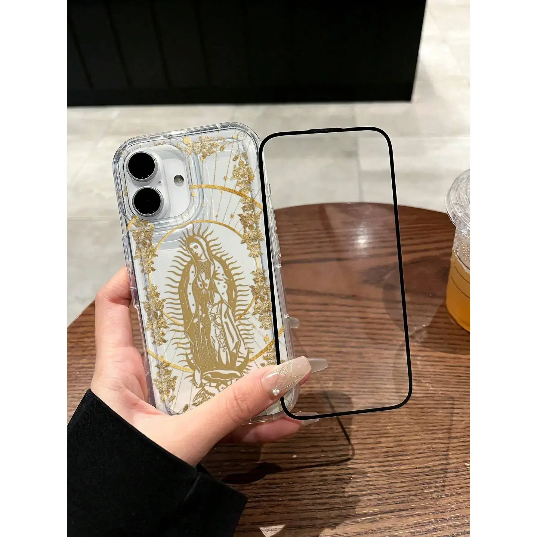Our Lady & Cross Print Clear Case for iPhone 11/12/13/14/15/15pro/15 Plus/15 Pro max - Shock-Proof TPU Full Wrap Coverage