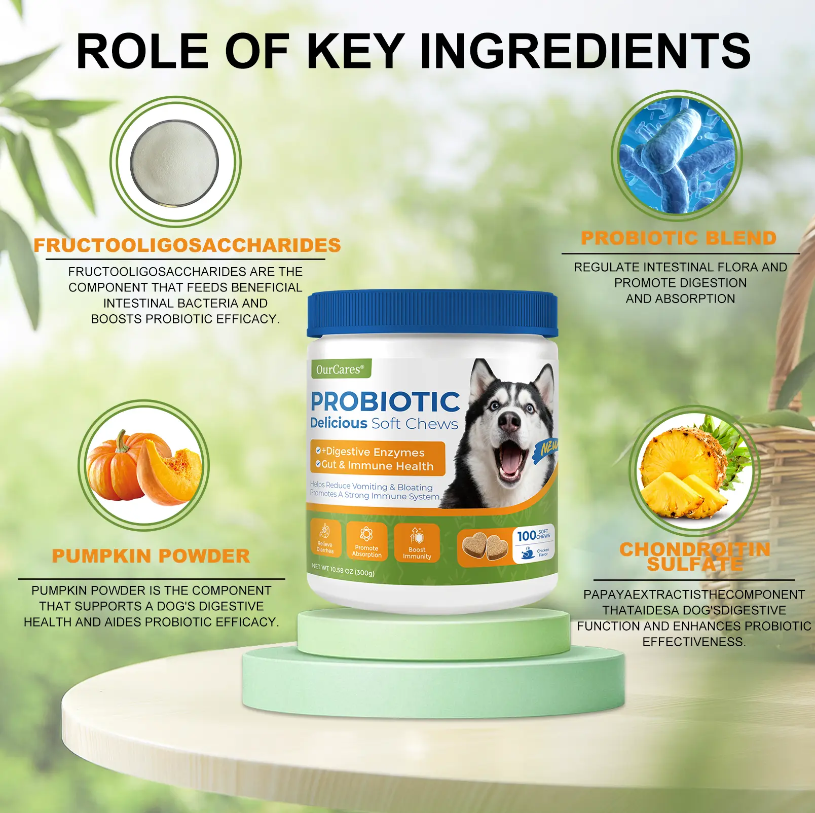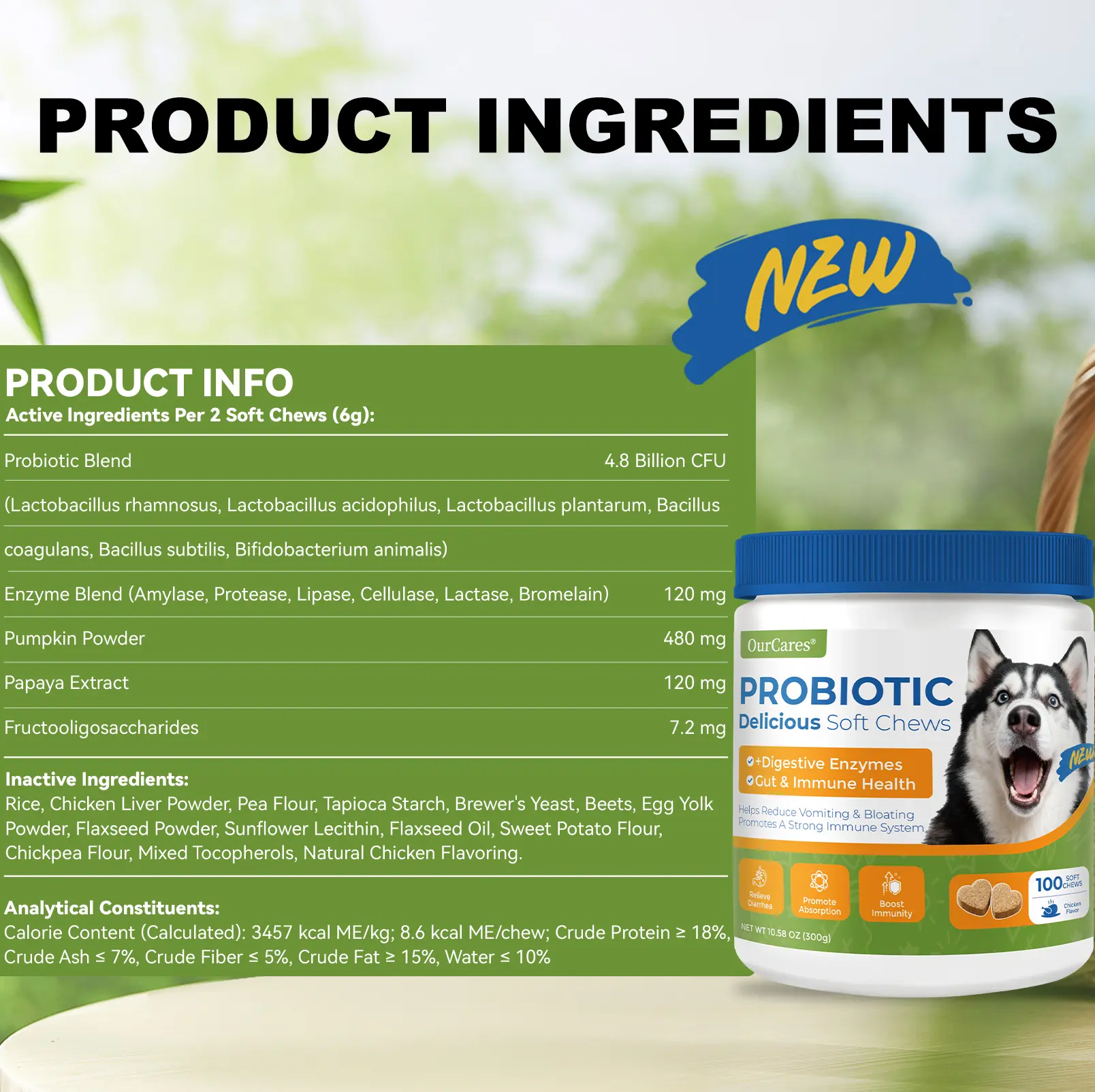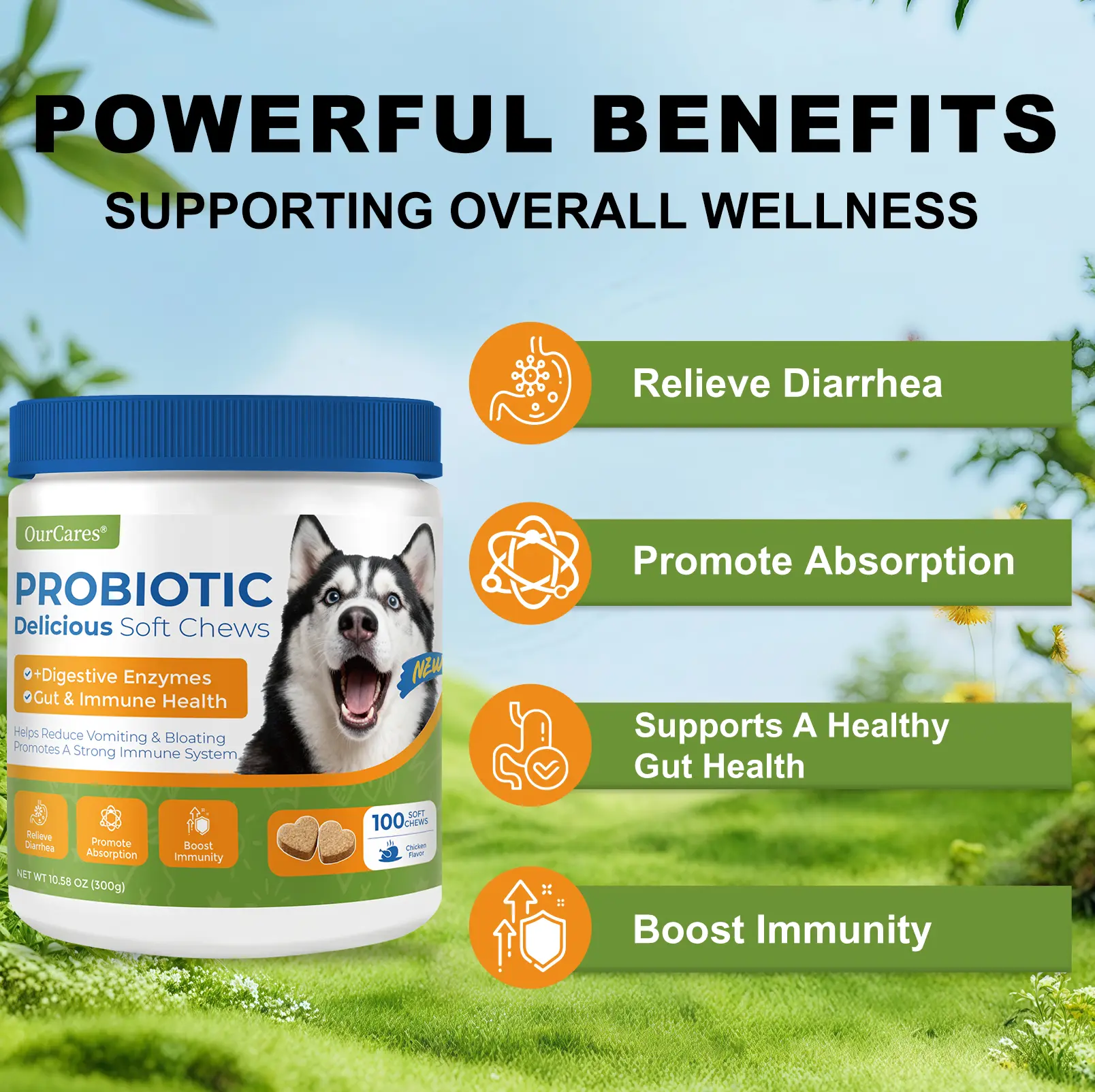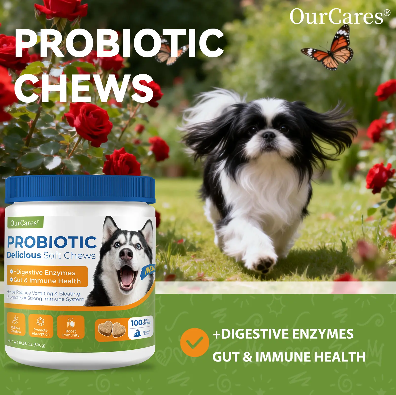 🐶 OURCARES Probiotics Formula Upgrade 100 Soft Chews Treats