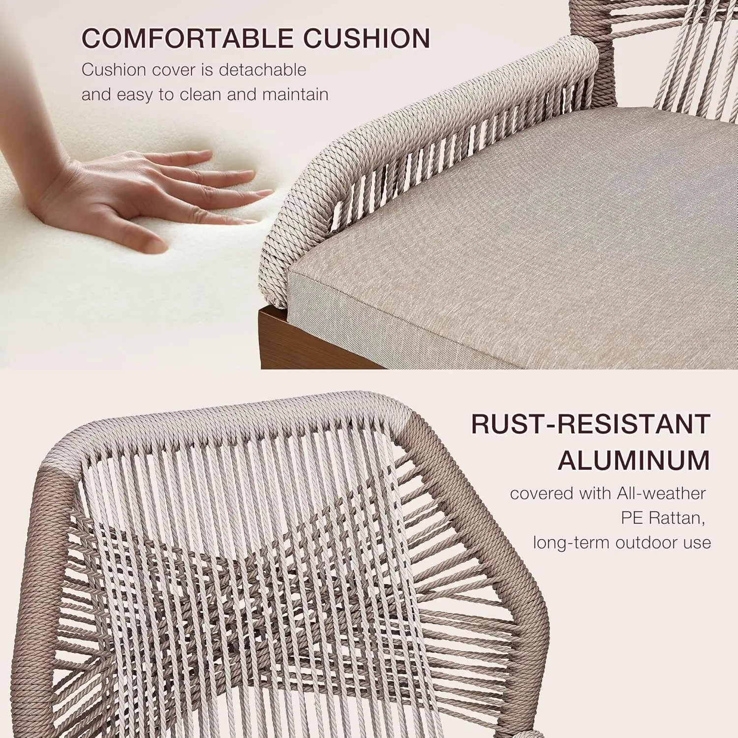 All-Weather PE Rattan: UV-resistant handwoven wicker resists sun, rain, and fading