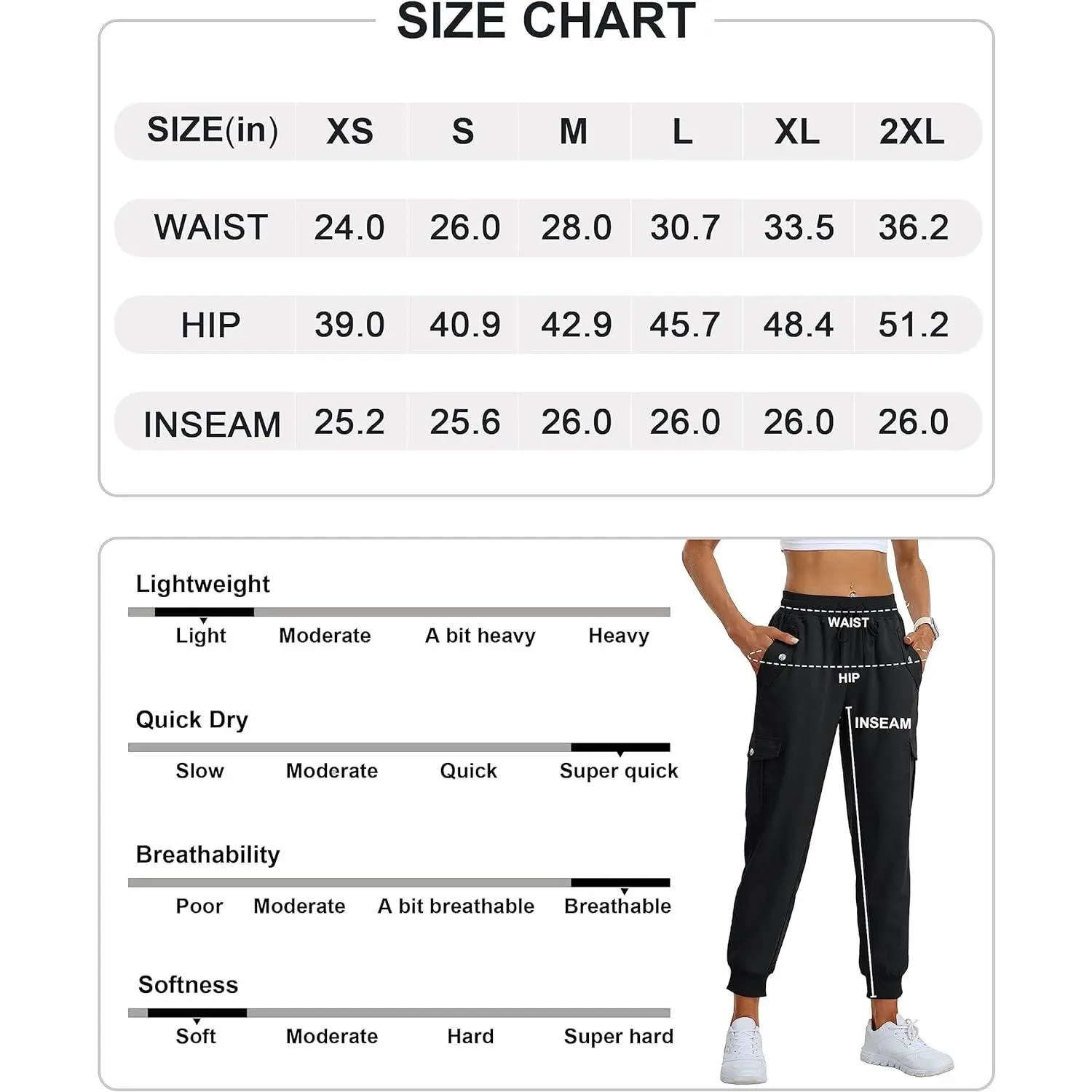 ·Uniquely designed tapered legs and elastic ribbed ankles for outdoor active and daily live.