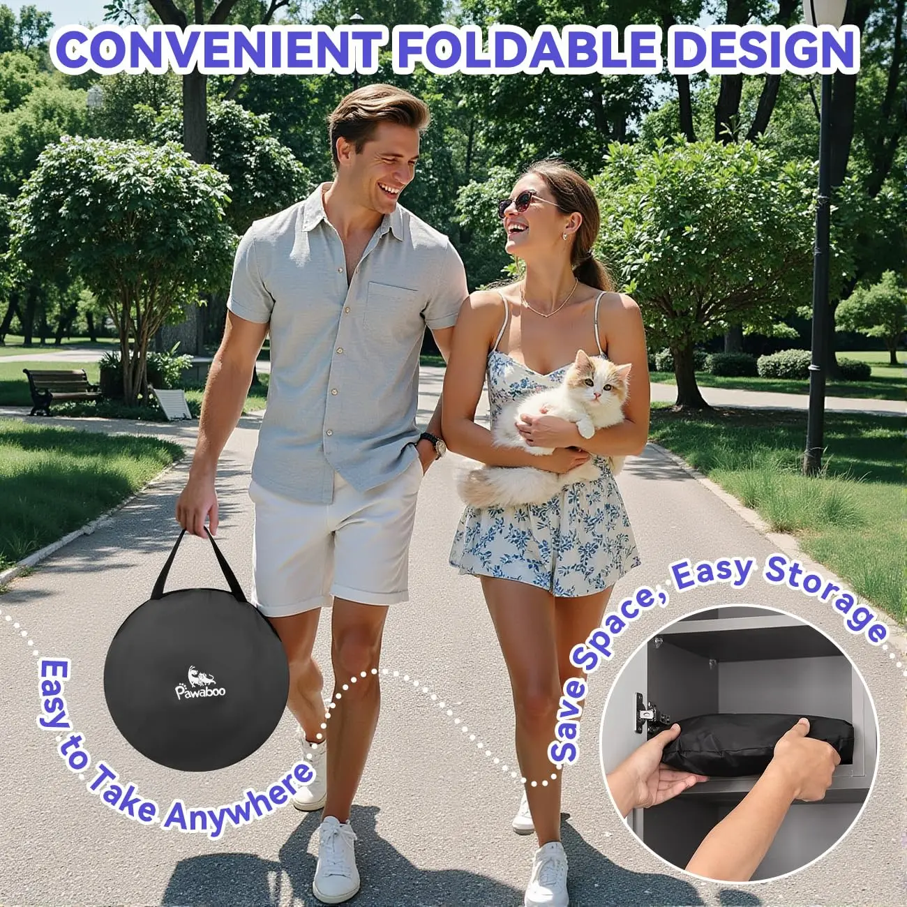 Easy to Use- Folding Style: The pet playhouse with tunnel is easy to fold into a compact size, making it convenient to store in the carrying bag and place into any narrow space.- Quick Setup: The tent quickly unfolds to combine for use, starting a good interactive playing session.