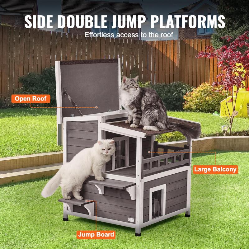 5. VEVOR Outdoor Cat House Weatherproof, TikTokShopBlackFriday, Feral Cat Shelter for Multiple Cats, 2-story Large Outdoor Wooden Cat House with Balcony, Doors, PVC Door Flaps and Open Roof, 30"L x 30"W x 32"H