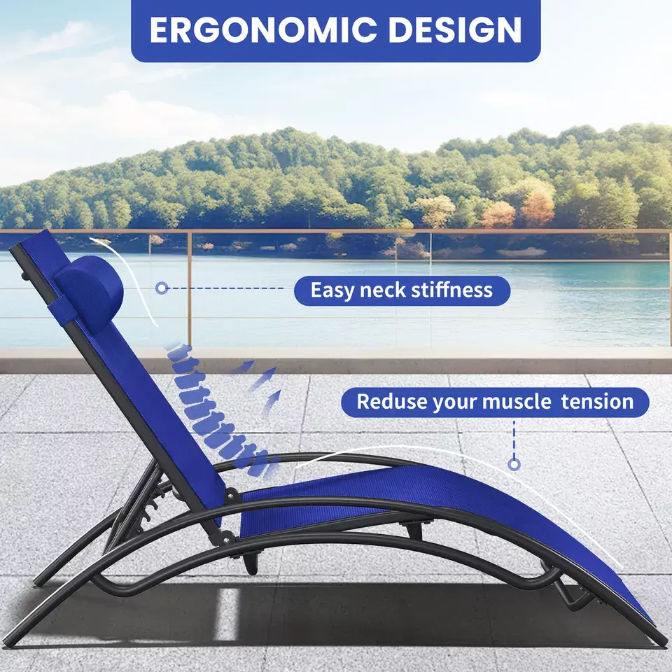User-friendly Adjustment: The chaise lounge chair boasts 5-position adjustable backrest and easily detachable cushions; Whether you're reading, soaking up the sun, or taking a rest, adjust it to your preferred angle for maximum comfort
