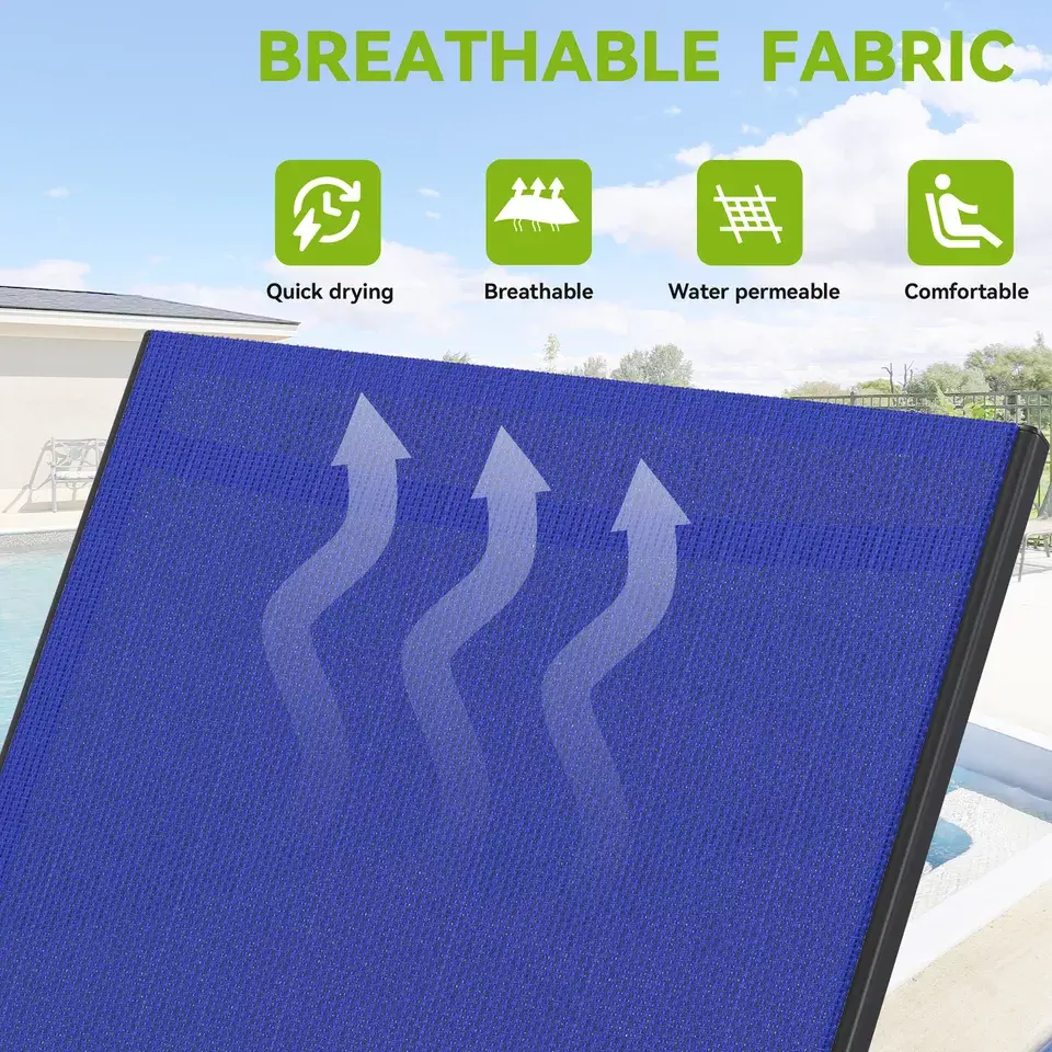 Breathable Textile Fabric: The patio lounge chairs are wrapped in high-quality textile fabric that’s breathable, quick-drying, easy to clean, and durable; It resists UV rays, rainwater, and stains for lasting use