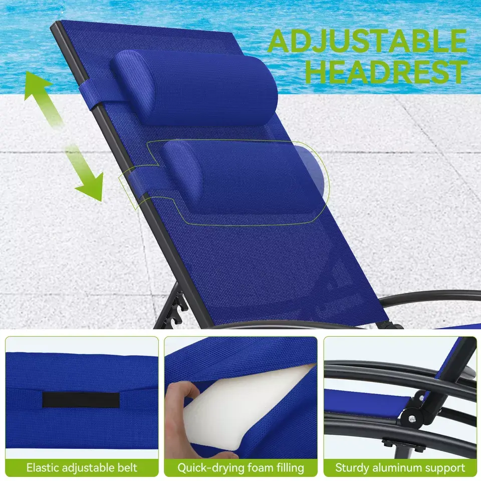 Rust-Resistant Metal Frame: Both outdoor chaise lounge chairs feature a sturdy metal frame with a rust-resistant coating, ensuring durability and a weight capacity of up to 330 pounds