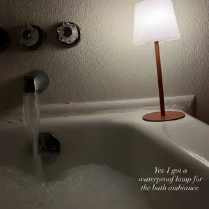 This LED shower table lamp offers a simple modern design with warm white, eye-caring soft light(Three Color Temperatures 3000K/4200K/6000K). The snow white lampshade creates a comfortable, romantic atmosphere. It's portable, waterproof, rechargeable, and durable, making it ideal for both indoor and outdoor use. Perfect for bathroom, bedside, living room, or as a daily light supplement.