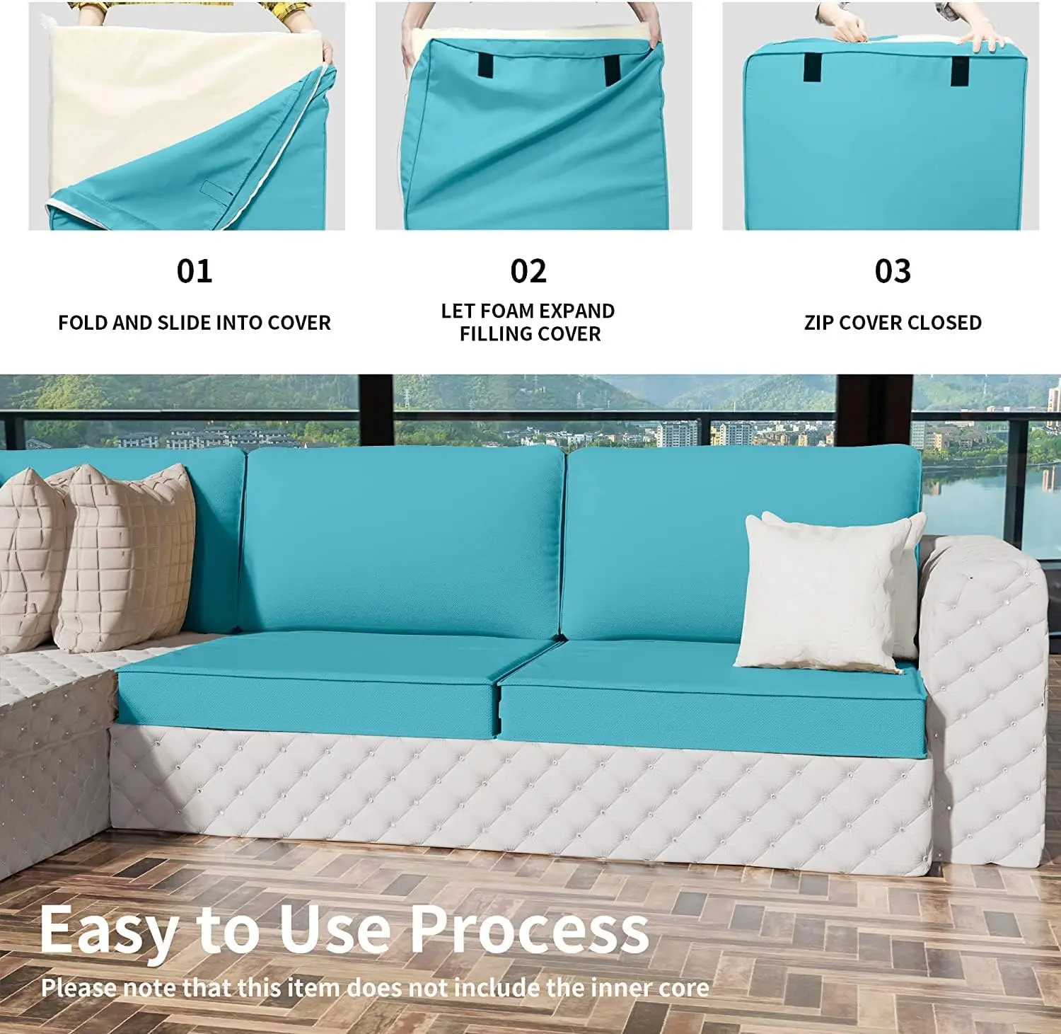 Exquisite Workmanship: The solid stitch outdoor cushion cover features an invisible zipper lock and piped edge to keep tight closure. For easy replacements, an extra length locking zipper prevents zippers from scratching your furniture.