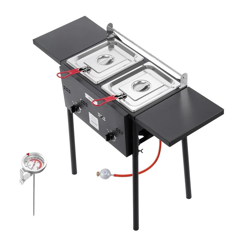 VEVOR 8QTx2 Outdoor Propane Deep Fryer Commercial Free Standing Cooker Two Tank