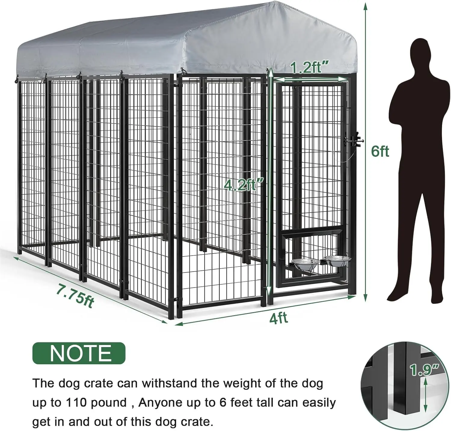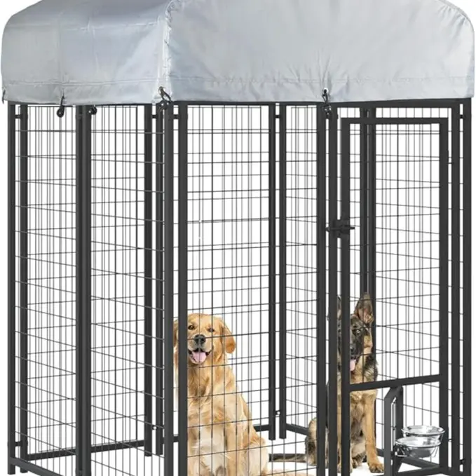 ·【STURDY & DURABLE METAL】- The dog kennel for outdoor made of high tensile-strength wire gauge. It is will not be knocked down or destroy by large dogs. The dog pens for outdoor ideal for training and transporting well-behaved pets. Pet kennel epoxy coating finish extends the life of the dog kennel and provides resistance against rust, corrosion, and fading, even in the most extreme climates.