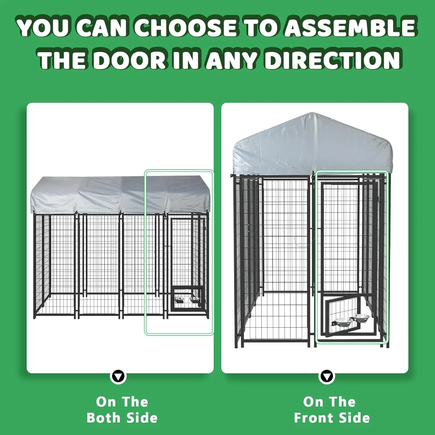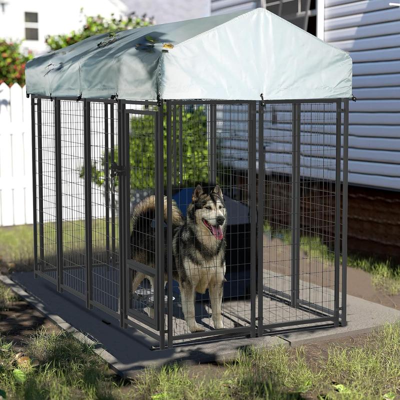 ·【PROTECTIVE ROOF INCLUDE】- The waterproof cover of heavy duty dog crate kennel and steel roof frame fit the outdoor dog cage perfectly and the enclosed ends provide your pet with full protection from sun, rain, snow and debris. Added UV protection prevents ripping, cracking, fading or peeling giving you years of worry-free use. The roof pitch of pet kennel allows for water, debris and light snow to run off instead of accumulating on the roof.