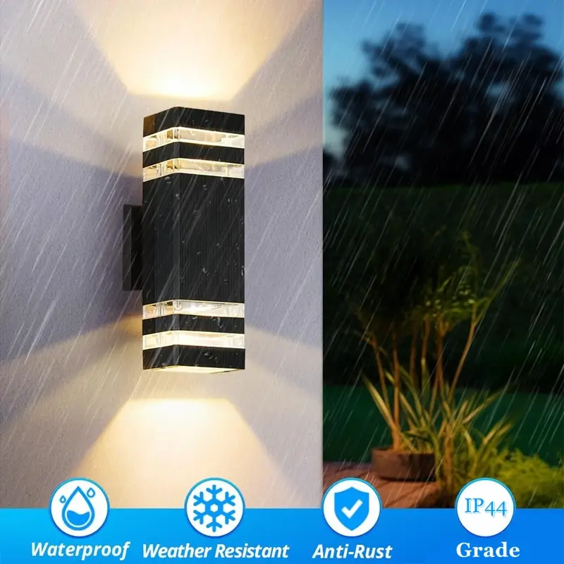 Outdoor Double-Head Wall Light with Plastic Shell, Up and Down Lighting, E27 Outdoor Waterproof Wall-Mounted Garden Lamp, Yard Lighting