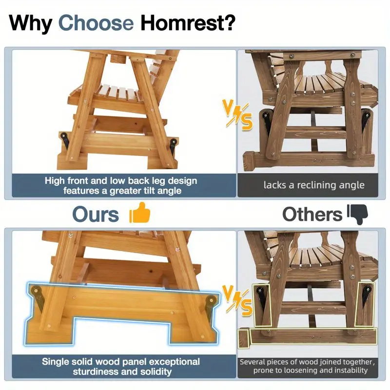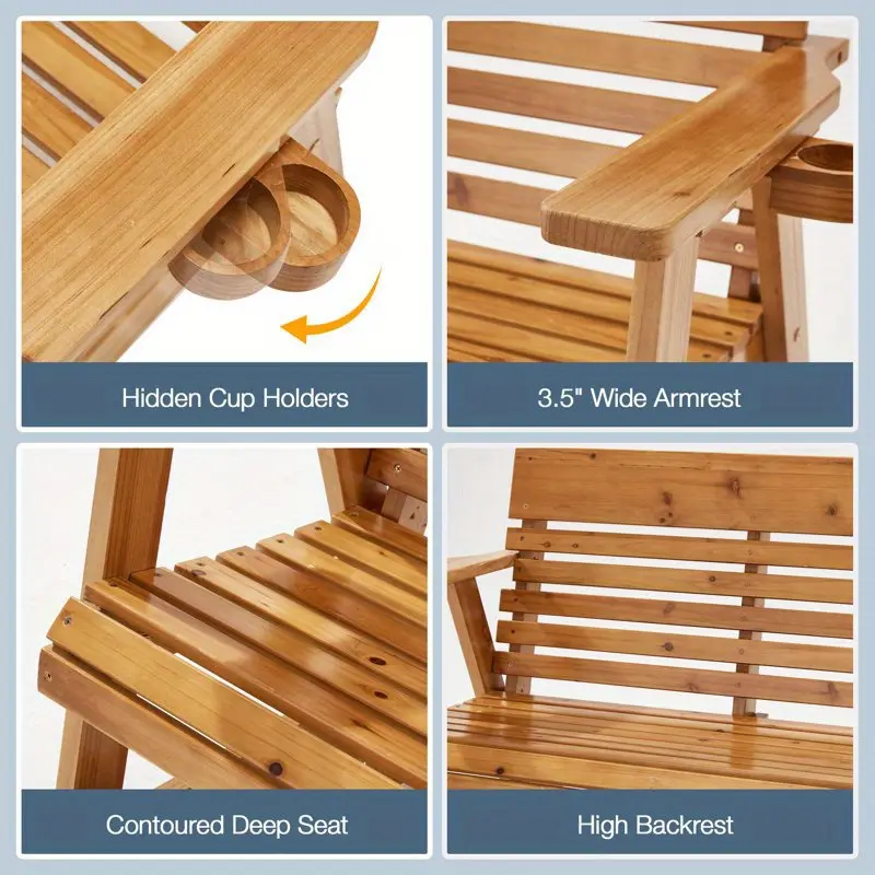 Crafted from solid, pressure-treated spruce wood with thick slats and smooth edges. Tested to support up to 600 lbs, providing a safe, durable, and comfortable gliding experience.