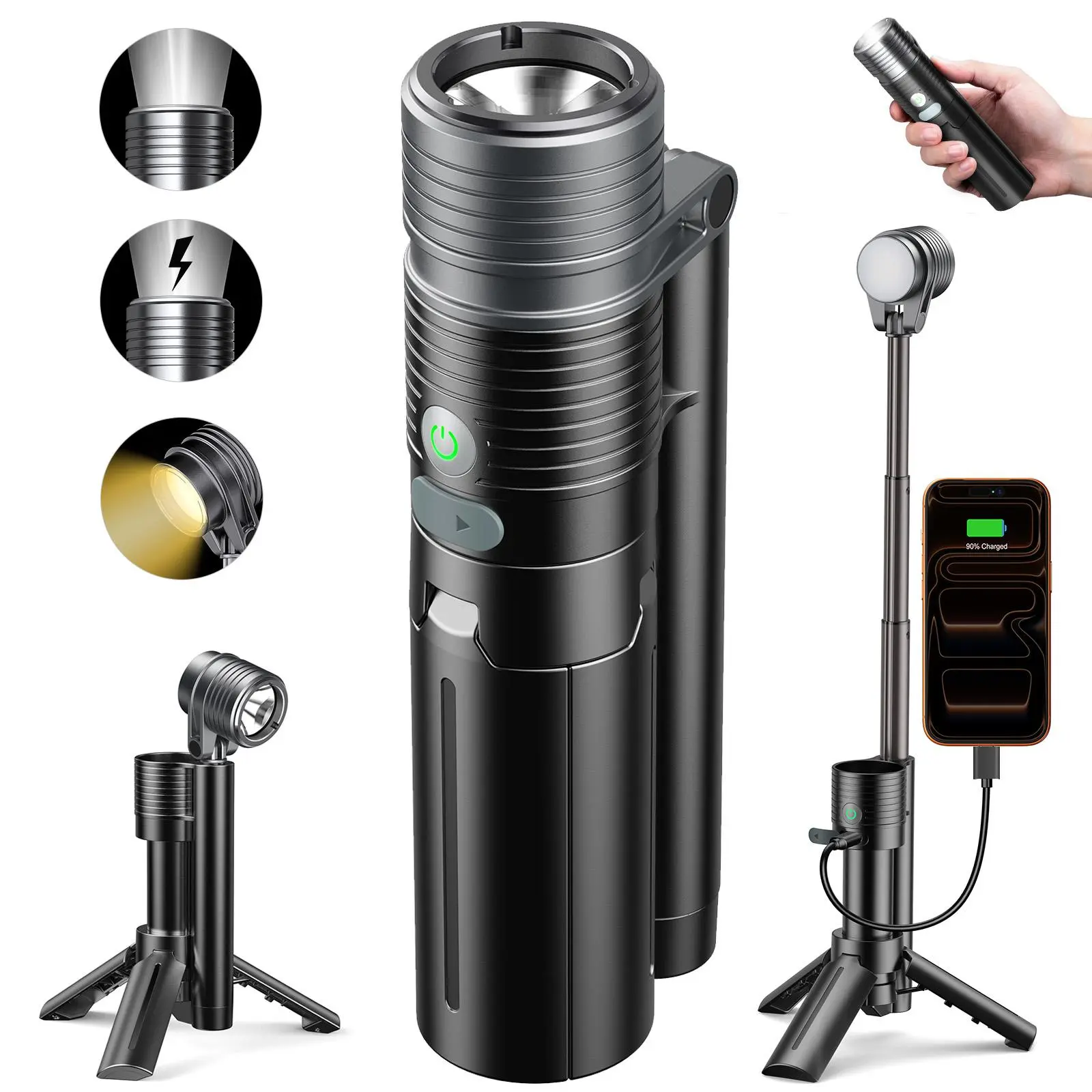 8 modes: 3-level white flood, 3-level warm flood, high-power spotlight, strobe + SOS. Switch from blinding search beam to chill campfire glow in one click.