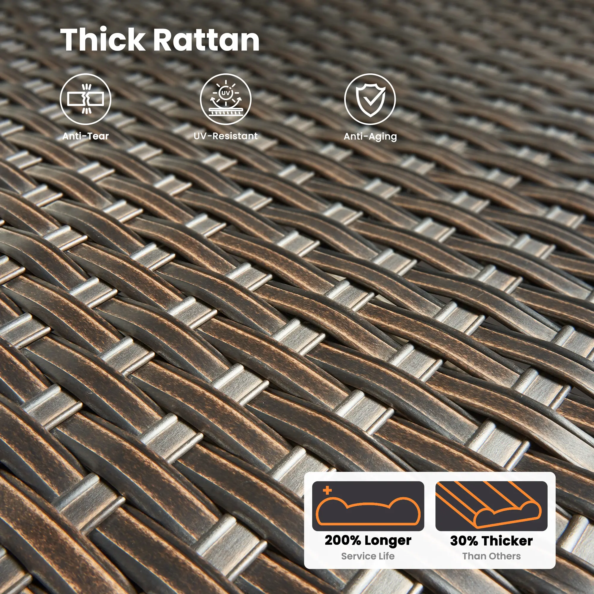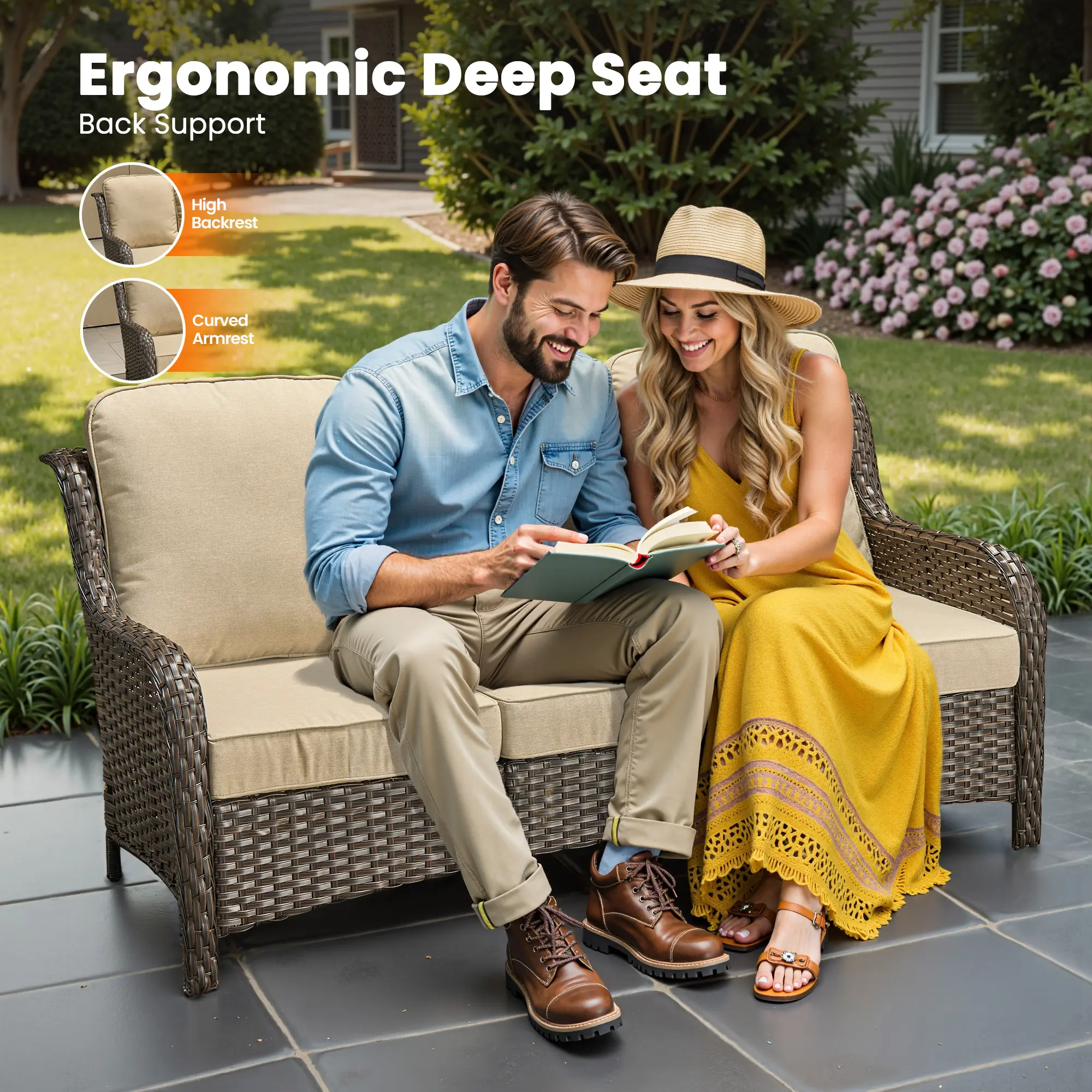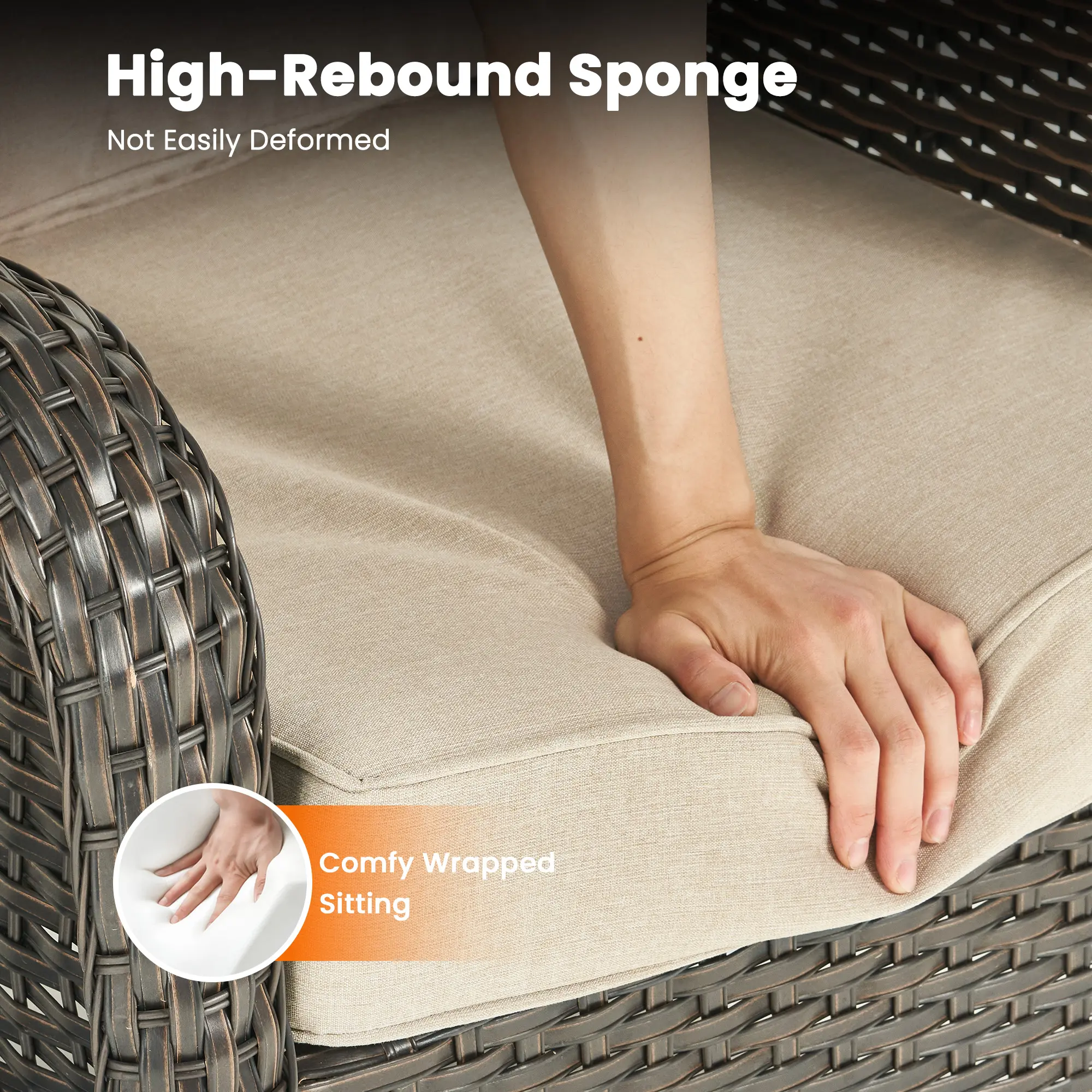 Immerse in sturdiness with handwoven wicker, paired with high-density cushions providing robust lumbar support. It's the perfect blend of strength and comfort.