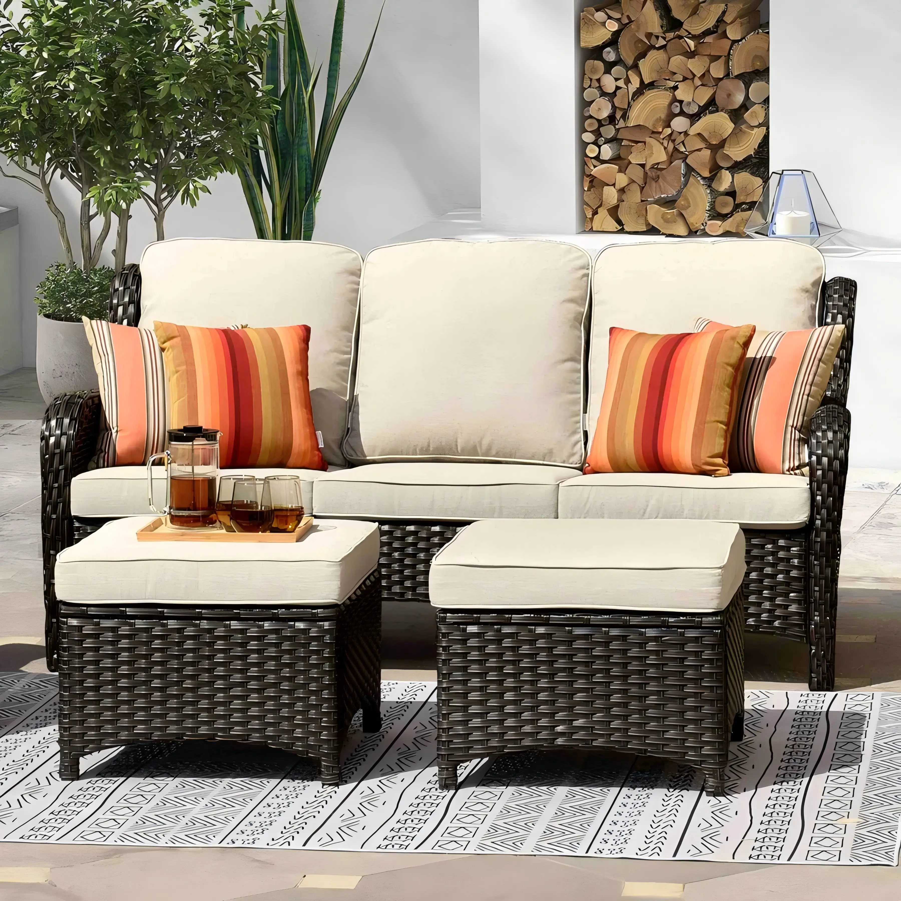 Cozy yet modern experience with spacious armrests and deep seats. Long-lasting wicker guarantees durability, erasing worries of wear over time.