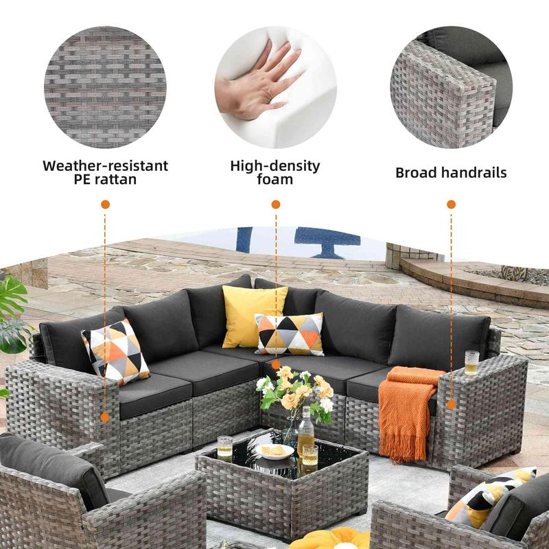 Simplify upkeep with cushion covers featuring smooth zippers for easy removal and washing. Crafted from hand-made weather-resistant PE rattan, this all-weather sectional sofa won't rust or fade. Product information