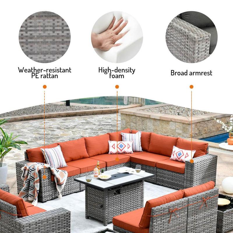 Simplify upkeep with cushion covers featuring smooth zippers for easy removal and washing. Crafted from hand-made weather-resistant PE rattan, this all-weather sectional sofa won't rust or fade.
