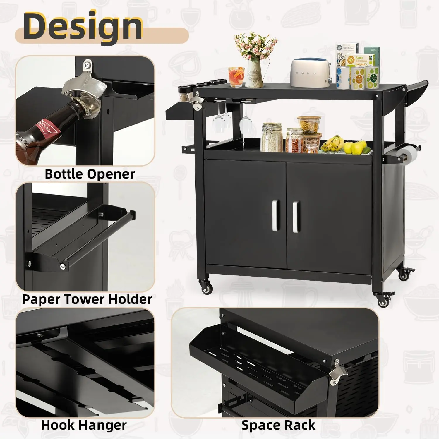 Mobility: Equipped with four wheels, including two that are rotatable and lockable, this grill cart is easy to move wherever you need it.