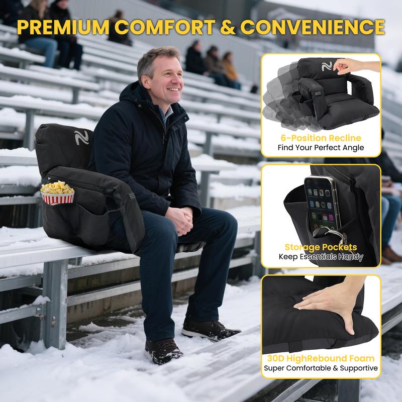 Great for football, baseball, concerts, hiking, or just cheering for your kids. Say goodbye to freezing, hard bleachers!