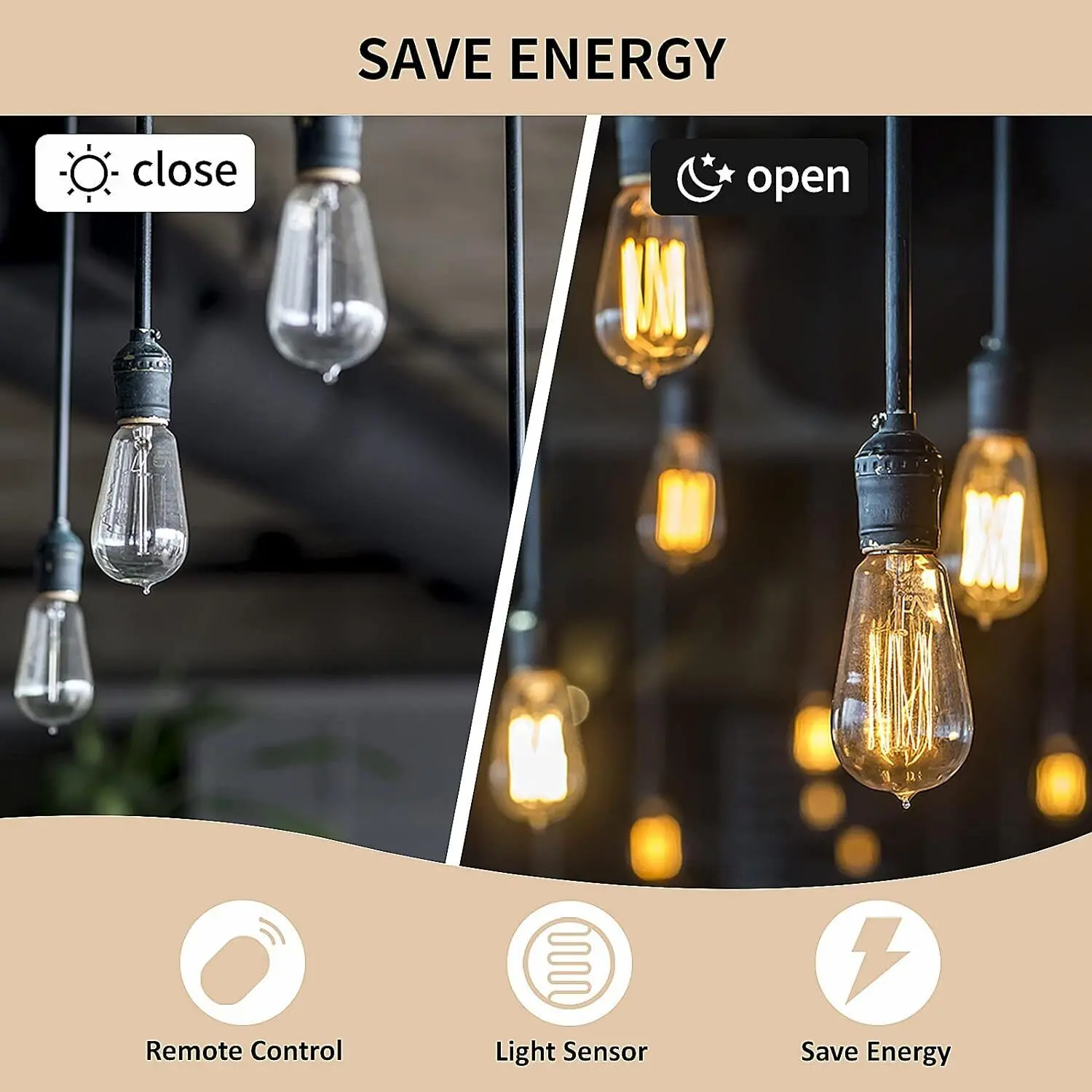·【Outdoor Light Sensor Timer】: 11 timer functions to select: ON/OFF function(Always ON/OFF), DUSK function(ON at dusk, OFF at dawn), 2/4/5/6/8Hr Countdown(ON at dusk, OFF after the selected time), daily repeat.