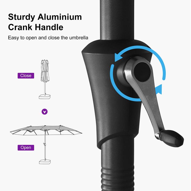 PURPLE LEAF 15 ft Double-Sided Outdoor Market Table Umbrella with Base for Pool