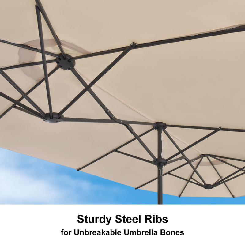 [ Double-Sided Design ] This extra rectangular double-sided market umbrella provides larger shading area up to 130+ square feet shade area when fully open. Ideal for family parties, garden, backyard, poolside and any other outdoor area.