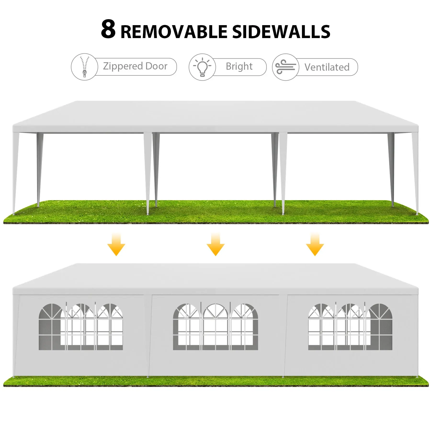 Multi-Purpose: This party tent is ideal for you to hold many outdoor events, such as fetes, booths, weddings, parties, celebrations, baby showers, etc.