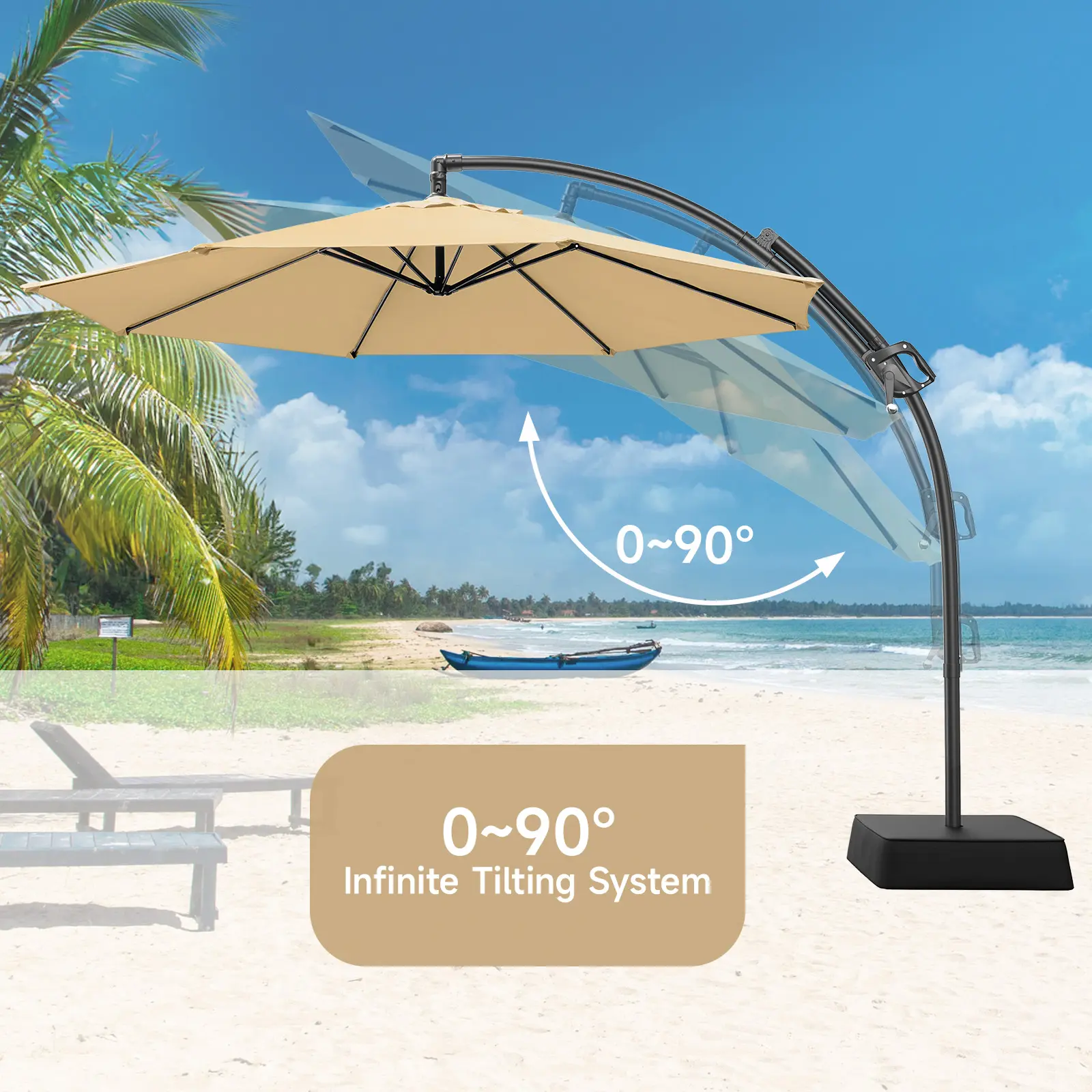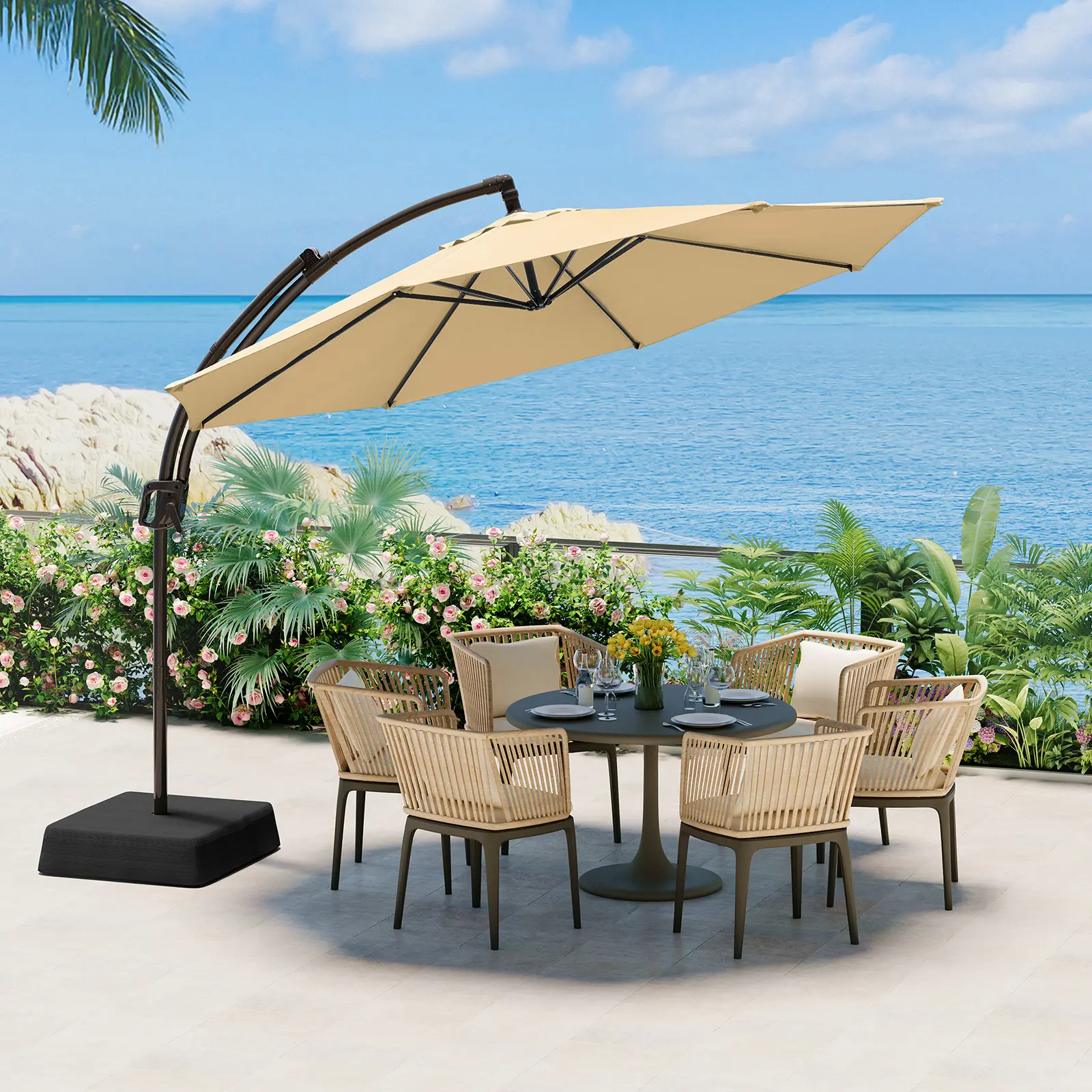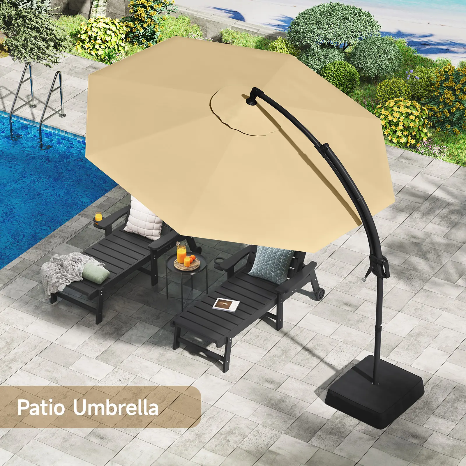 ·【US Standard Class 4 Color Fastness】The fabric of the cantilever umbrella drips effortlessly during storms, dries quickly without being dull, and its hue resists the slow loss of time. Enduring shade season after season in the relentless sun, as the years pass, this deck umbrella still maintains its American standard of Class 4 color fastness, which is a silent guardian.