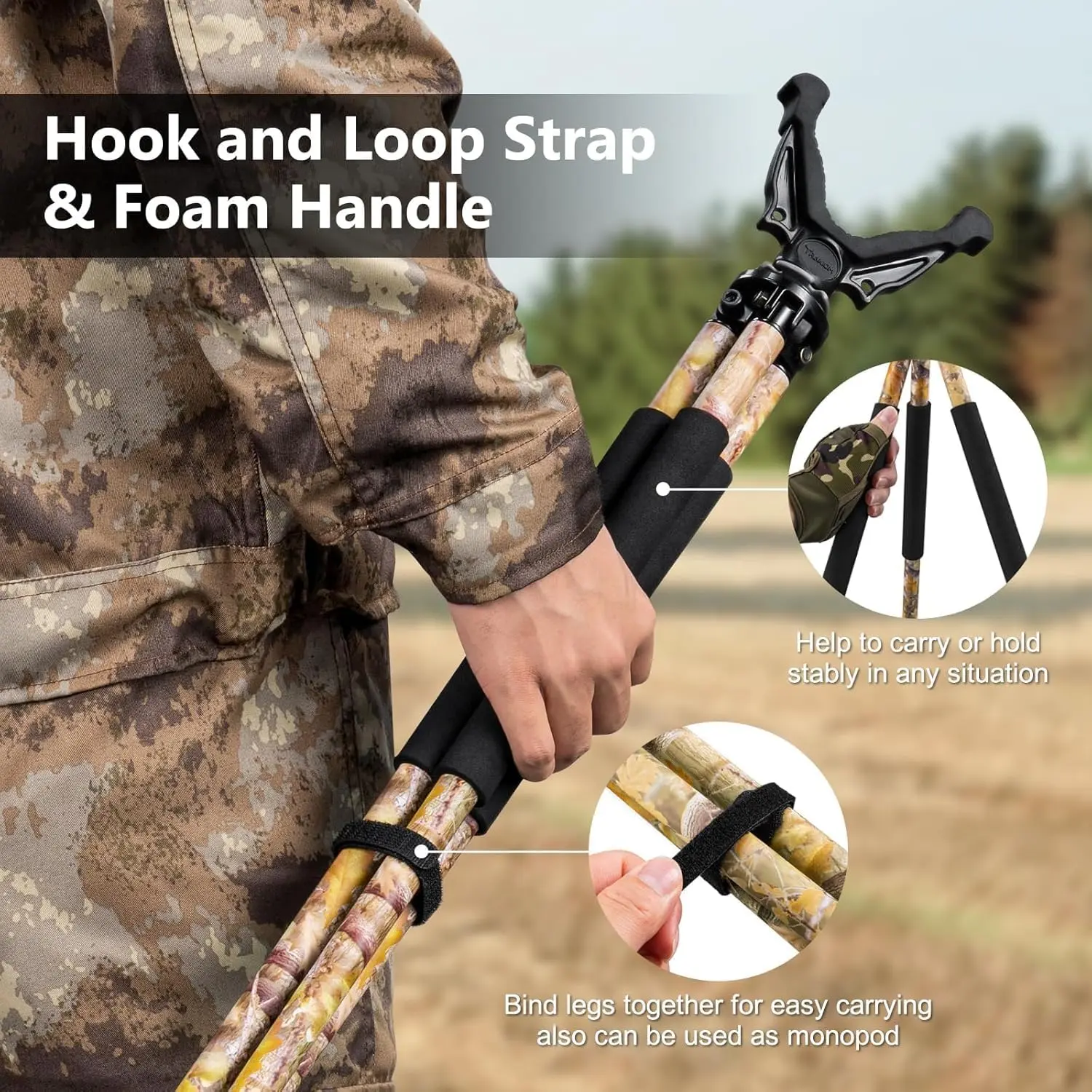 ·Strap to quickly secure the legs for effortless transport in the field.