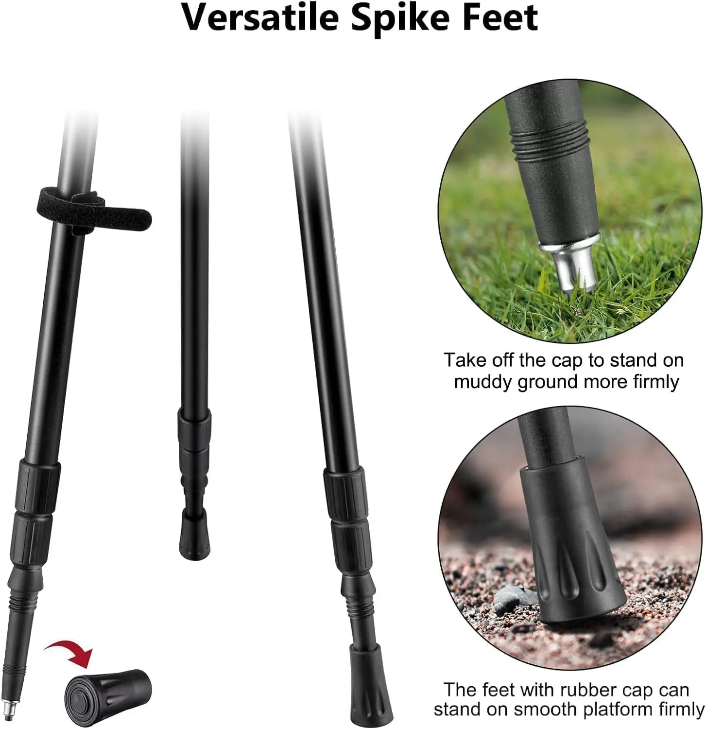 ·Versatile Spike Feet: Removable rubber caps for a stable base on hard surfaces.