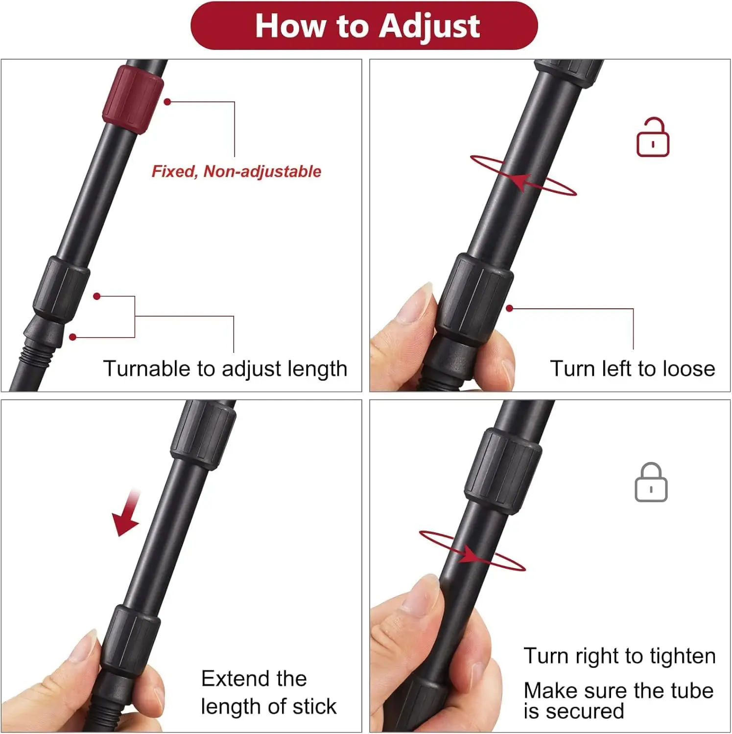 ·Easily adjust the height via smooth twist locks.
