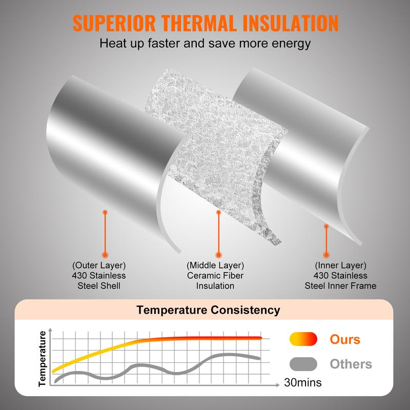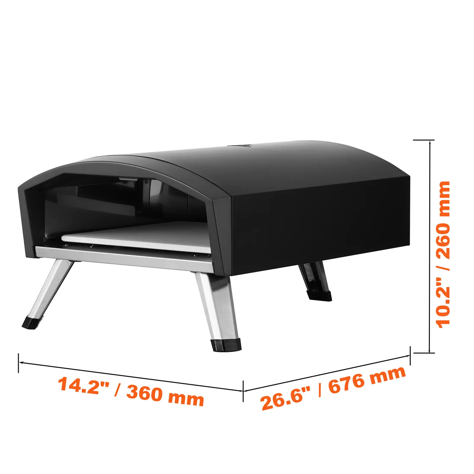 • Gas Powered: Gas-powered pizza oven with knob control for ignition, offering higher efficiency and convenience. No need to handle fuel waste, clean and easy.