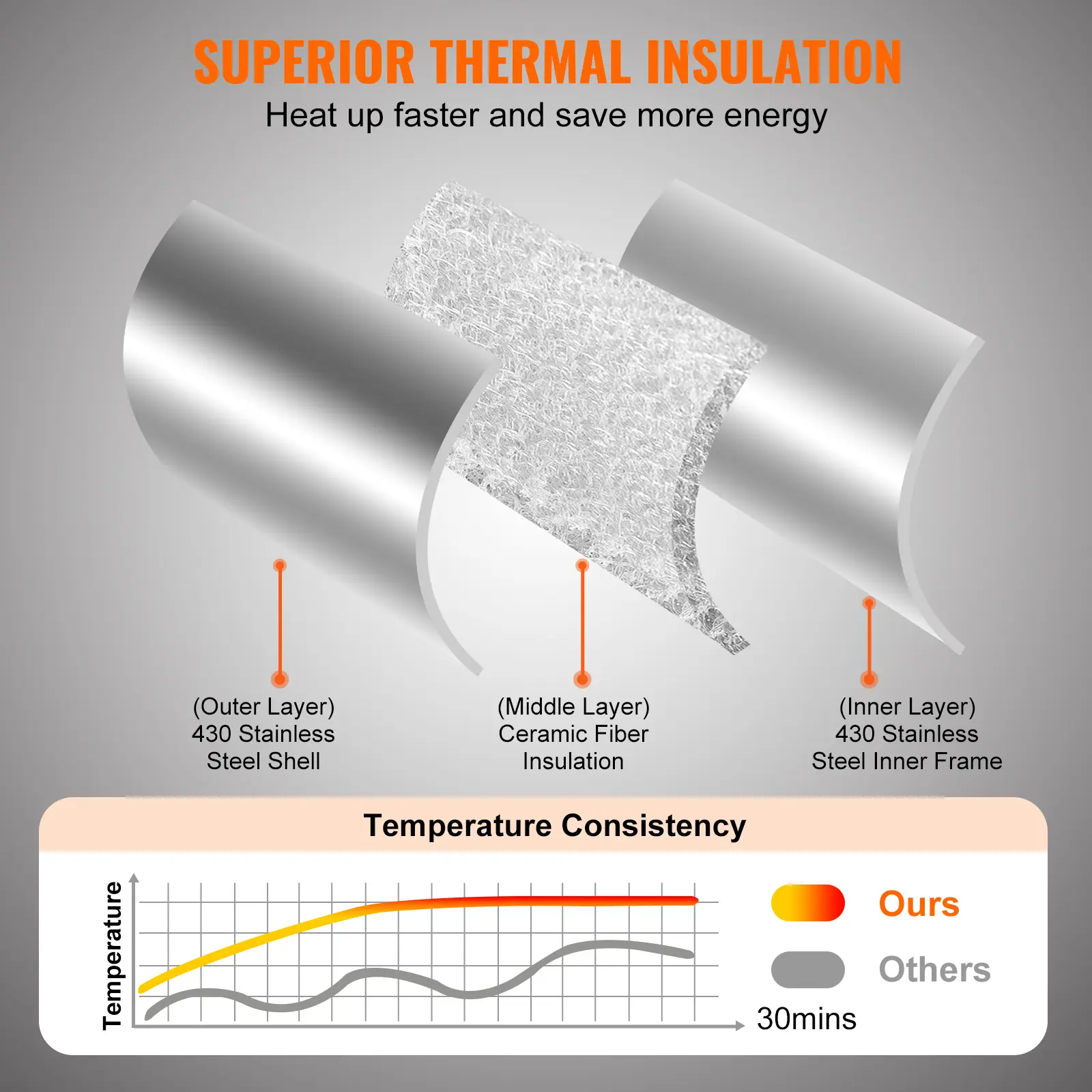 • Insulating Material: Ceramic fiber insulation cotton placed between double-layer insulation materials in the oven ensures more even heat distribution, reduces heat loss, promotes faster heating, and achieves higher temperatures.