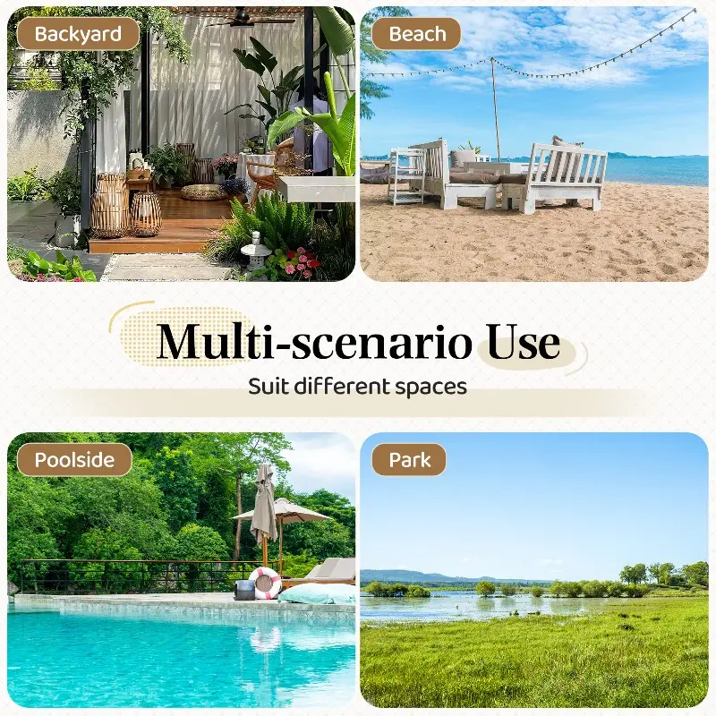 Tool-free assembly allows quick setup and takedown in minutes. The freestanding stand protects trees and provides portability, making it perfect for backyards, beaches, parks, and campsites.