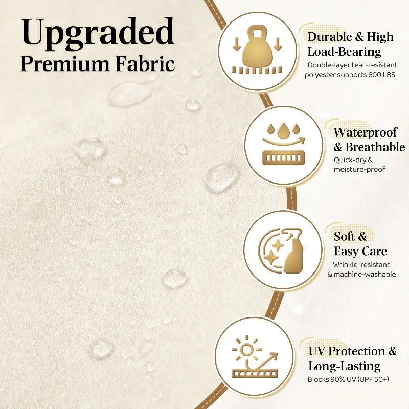 Made with dual-layer, tear- and wear-resistant polyester, this hammock is water-repellent, quick-drying, breathable, and skin-friendly. Machine-washable and wrinkle-resistant, with UPF 50+ protection blocking 90% of harmful UV rays for long-lasting outdoor durability.