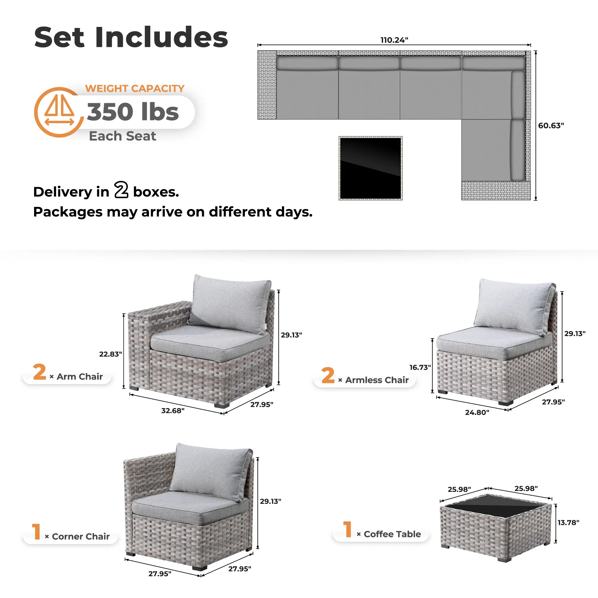 Simplify upkeep with cushion covers featuring smooth zippers for easy removal and washing. Crafted from hand-made weather-resistant PE rattan, this all-weather sectional sofa won't rust or fade. Product information