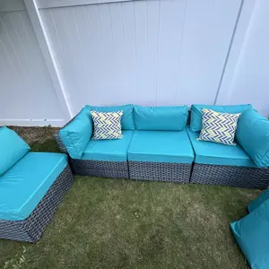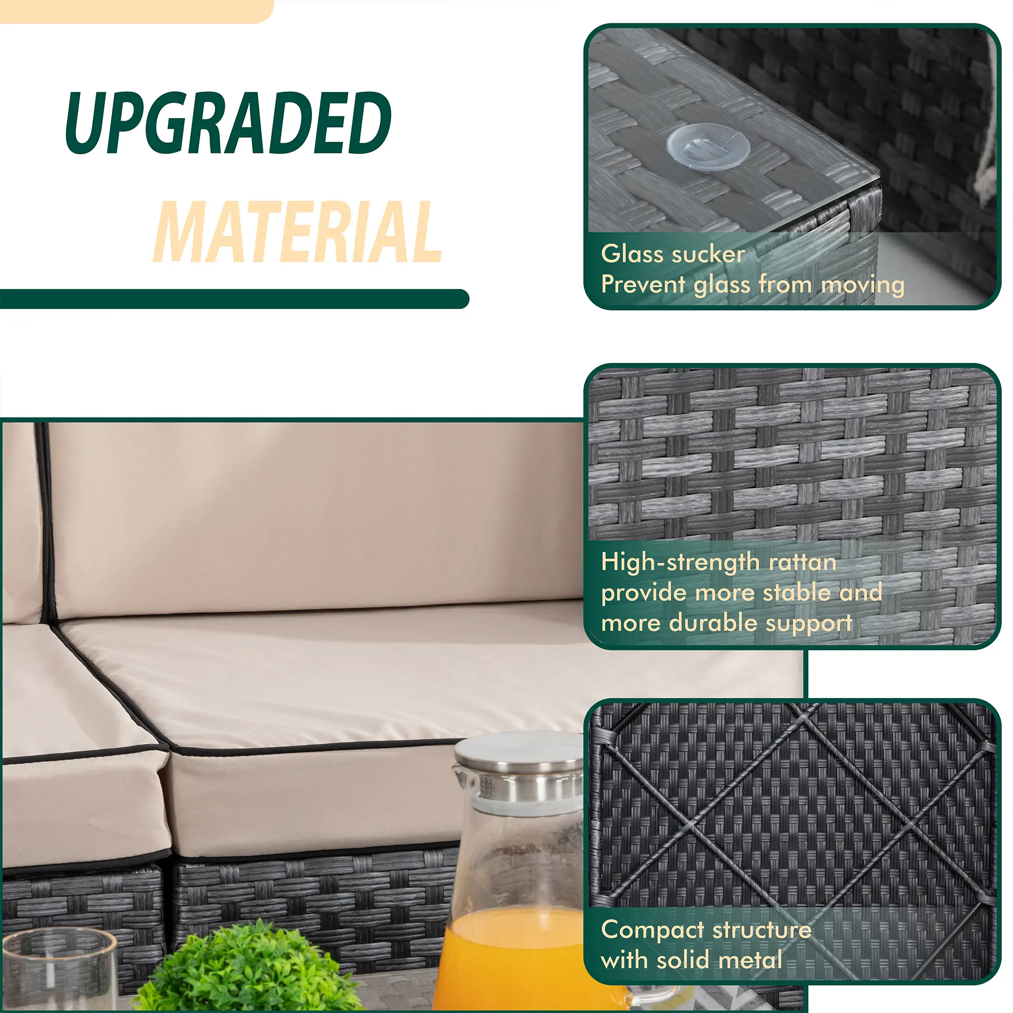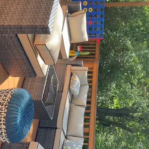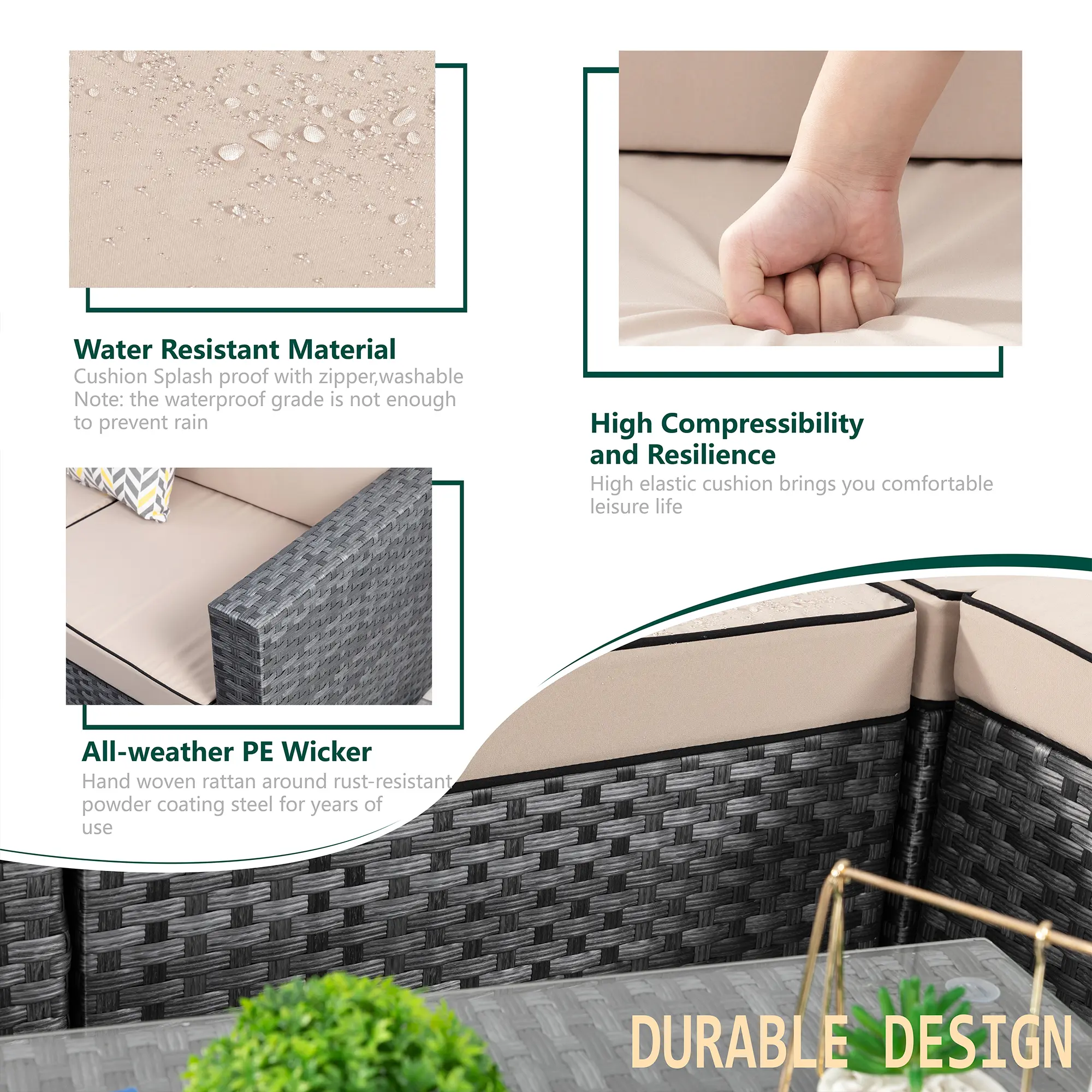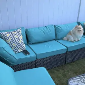 ¡Water Resistant Cushions: The outdoor-rated cushion covers are PU-coated polyester fabric that is UV-ray, stain, and moisture-resistant and is more substantial than standard polyester. The 4'' cushions of this 7 pieces outdoor conversation set, providing excellent support and reduces fatigue, the removable cushions with smooth zipper make cleaning a breeze