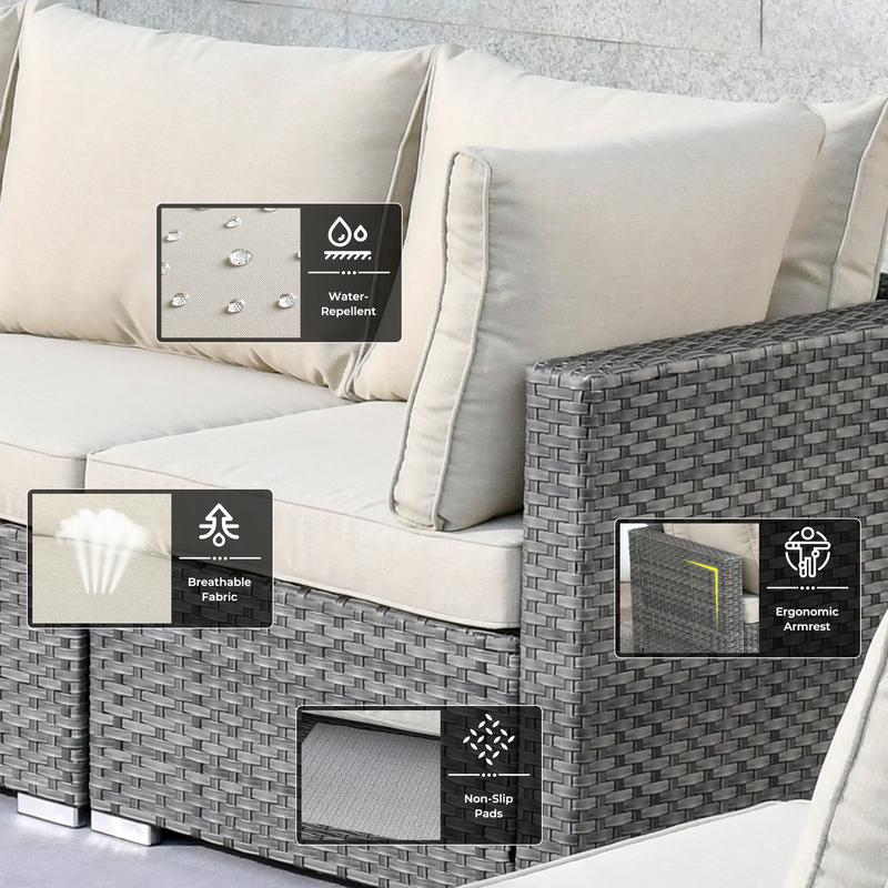 ·Modular Sectional Set:Customize your outdoor space with this sectional patio furniture set. With multiple configuration options, you can create a welcoming outdoor oasis for lounging, entertaining, or simply enjoying the fresh air. Create your perfect setup and make the most of your outdoor living experience.