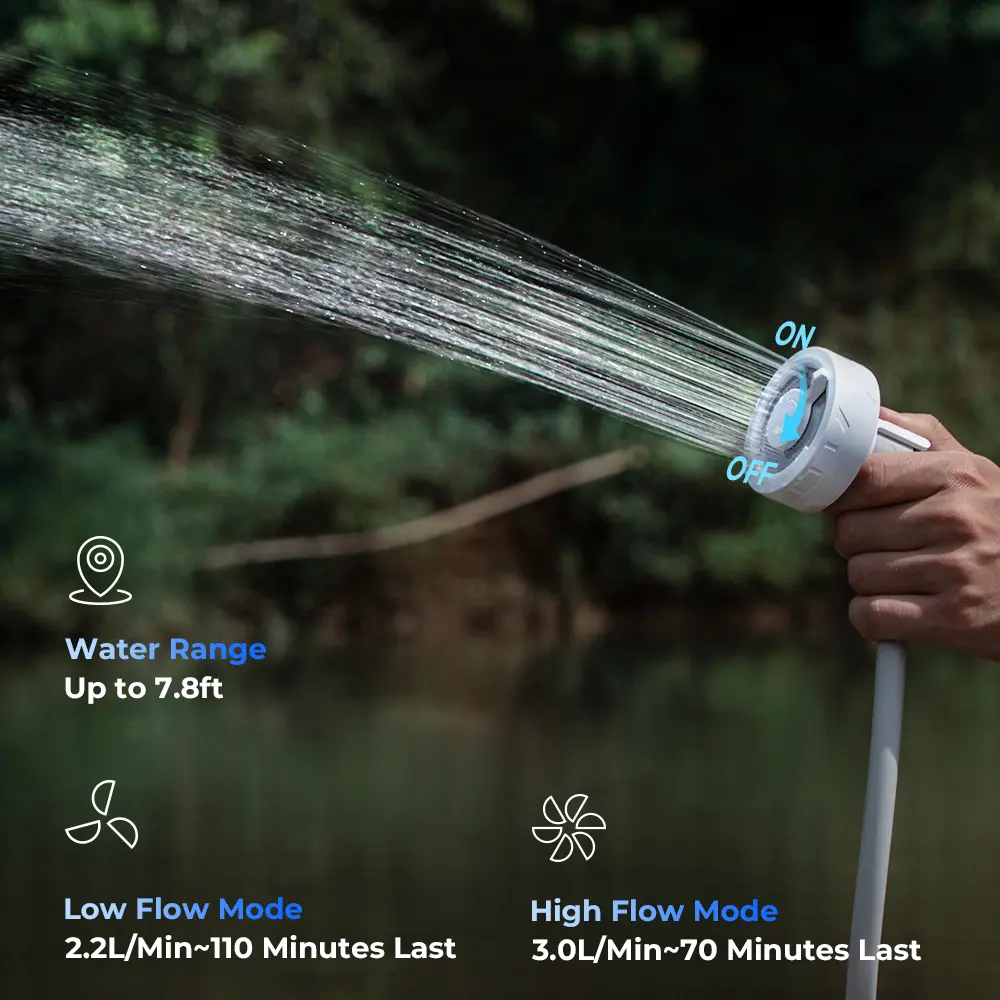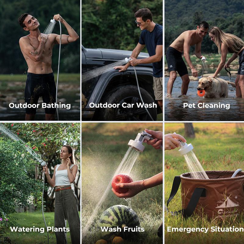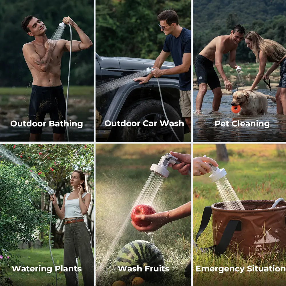 MAX SHOWER is suitable for various outdoor scenes: outdoor showers, car wash, pet cleaning, wilderness exploration, beach vacations, as well as outdoor activities such as travel, hiking, car trips, fishing, etc.