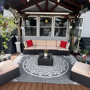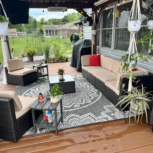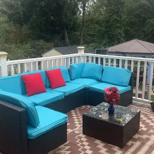 ·Sturdy and Long-Lasting: The outdoor sectional sofa set has a solid powder-coated cross structure steel frame that resists rust and is very sturdy. The hand-woven PE wicker has high tensile strength and is water-resistant. It can endure all weather conditions, ensuring a long service life.