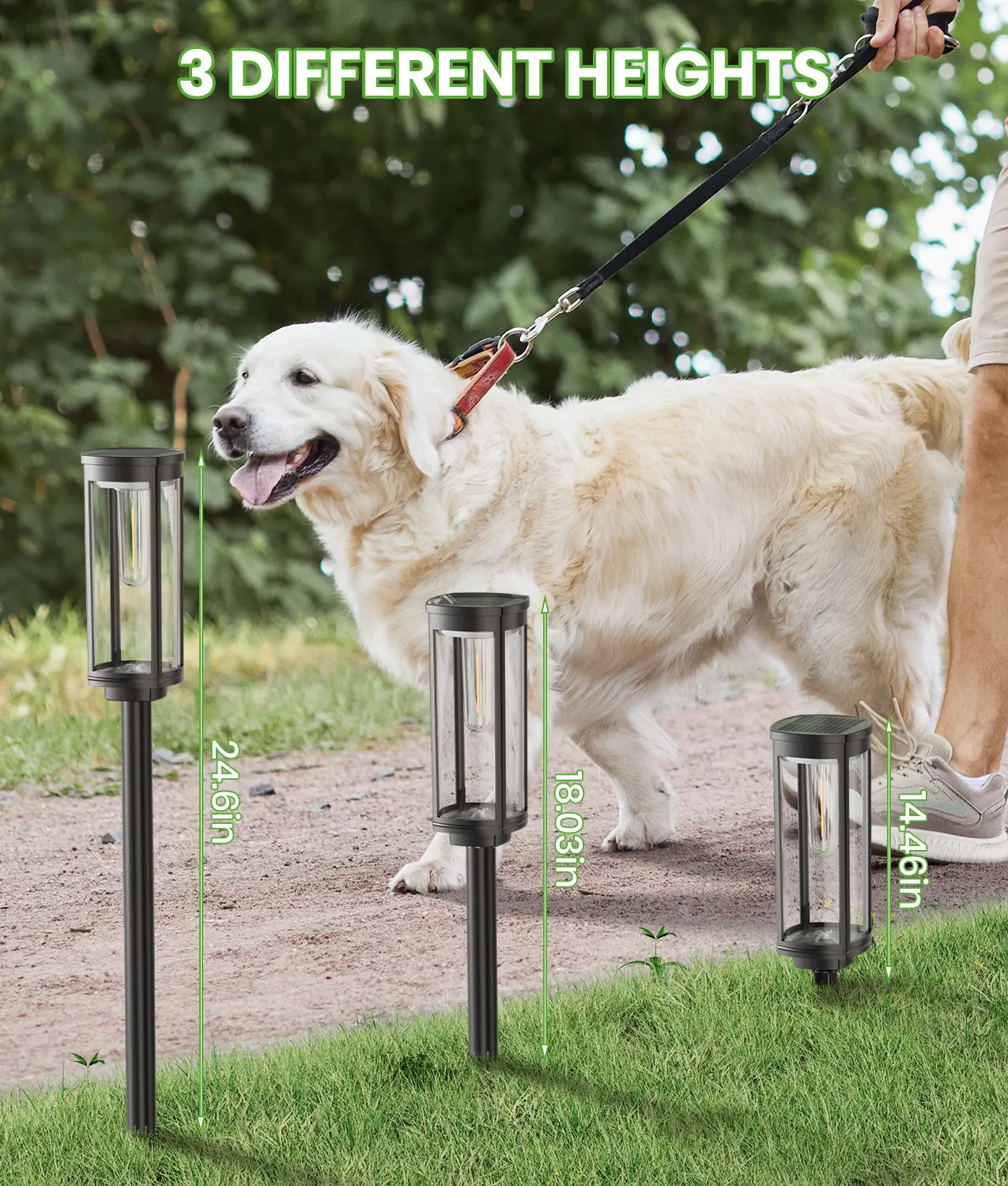 BITPOTT outdoor solar garden lights have an IP65 waterproof rating, ensuring resistance to all weather conditions. Installation is simpleājust connect stakes, poles, and insert into the ground or lawn. Turn on before use and place where it receives ample sunlight for optimal lighting.