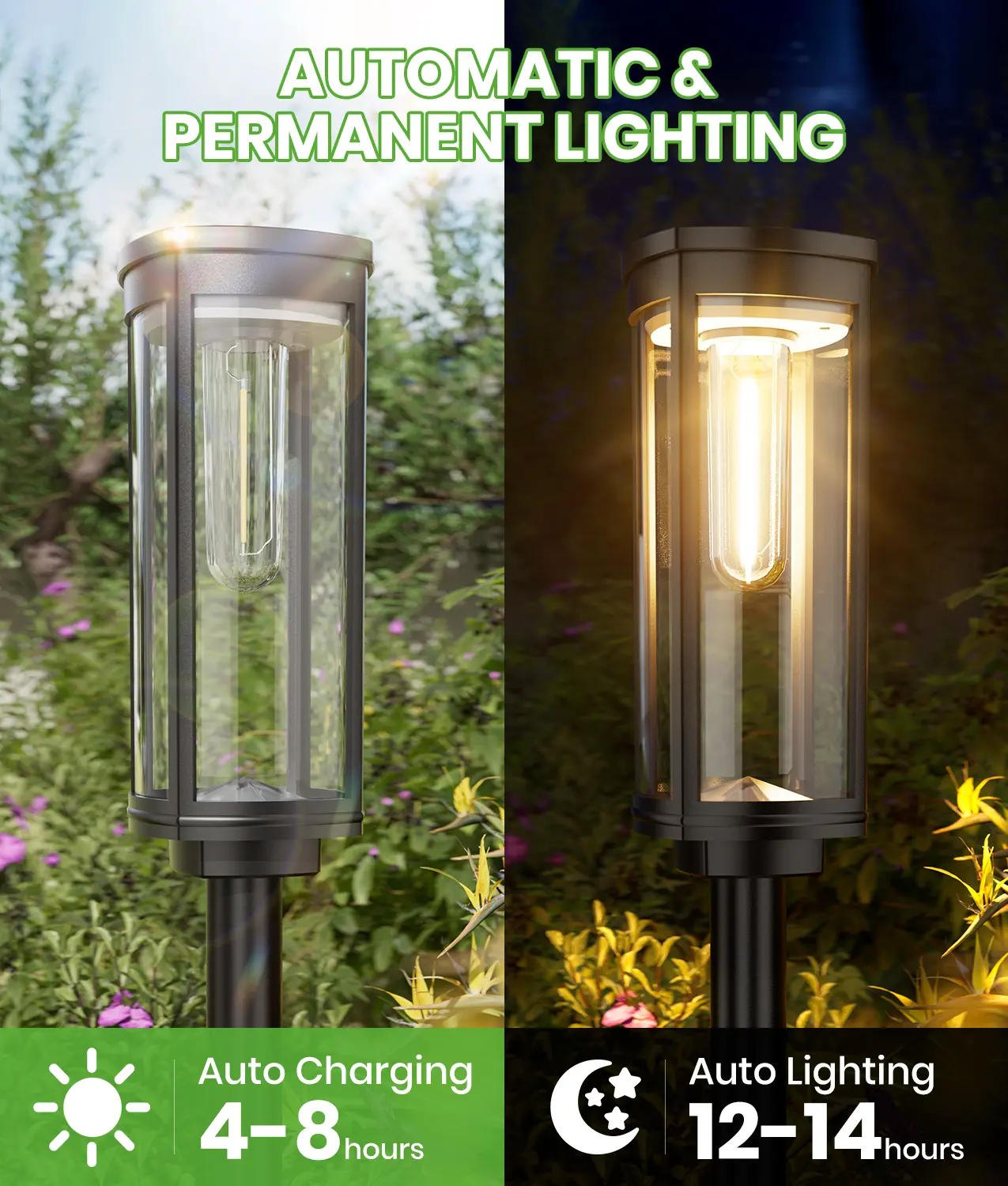 Compared to traditional amorphous silicon solar panels, our solar outdoor pathway lights use high-performance monocrystalline silicon solar panels. This ensures superior conversion rates, offering faster charging times. Fully charge your lights in just 4-8 hours. Enjoy convenience without compromising on efficiency.