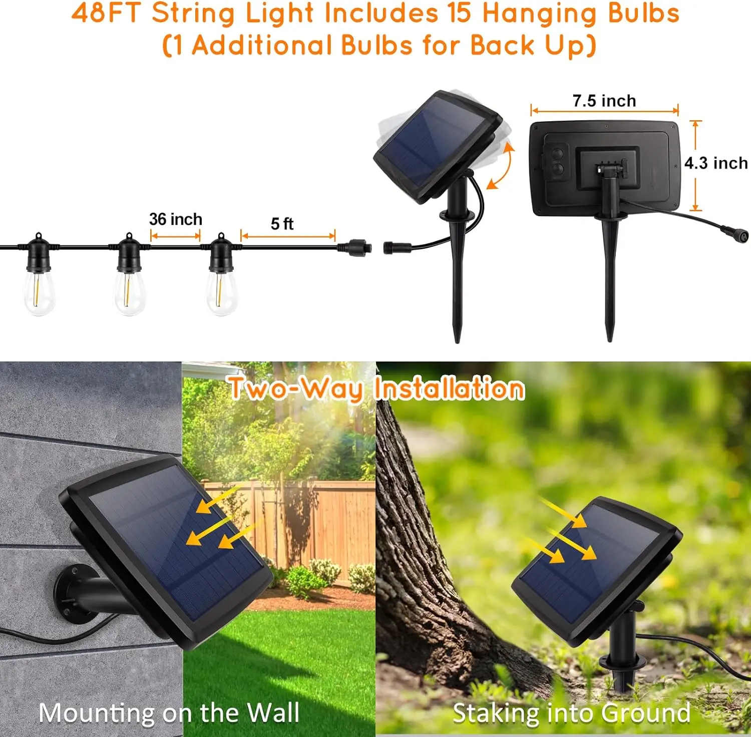 ·【Great Value & No-Worry】Our solar outdoor waterproof string lights are well-designed and produced, all of our products are strictly tested before packing.