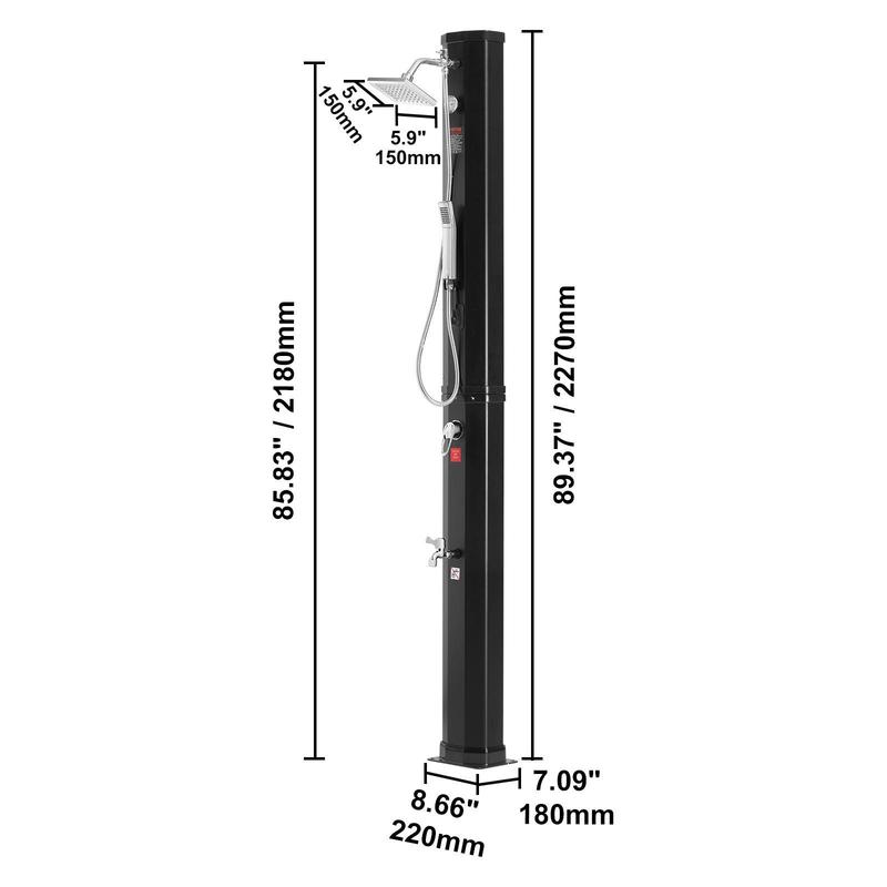 • Multiple Uses: Vertical outdoor shower can adjust the hot and cold, suitable for the backyard, poolside, etc. In addition to everyday outdoor pre and post-swim cleaning, it can also be used for pet cleaning, filling water guns, water balloons, and other water toys.